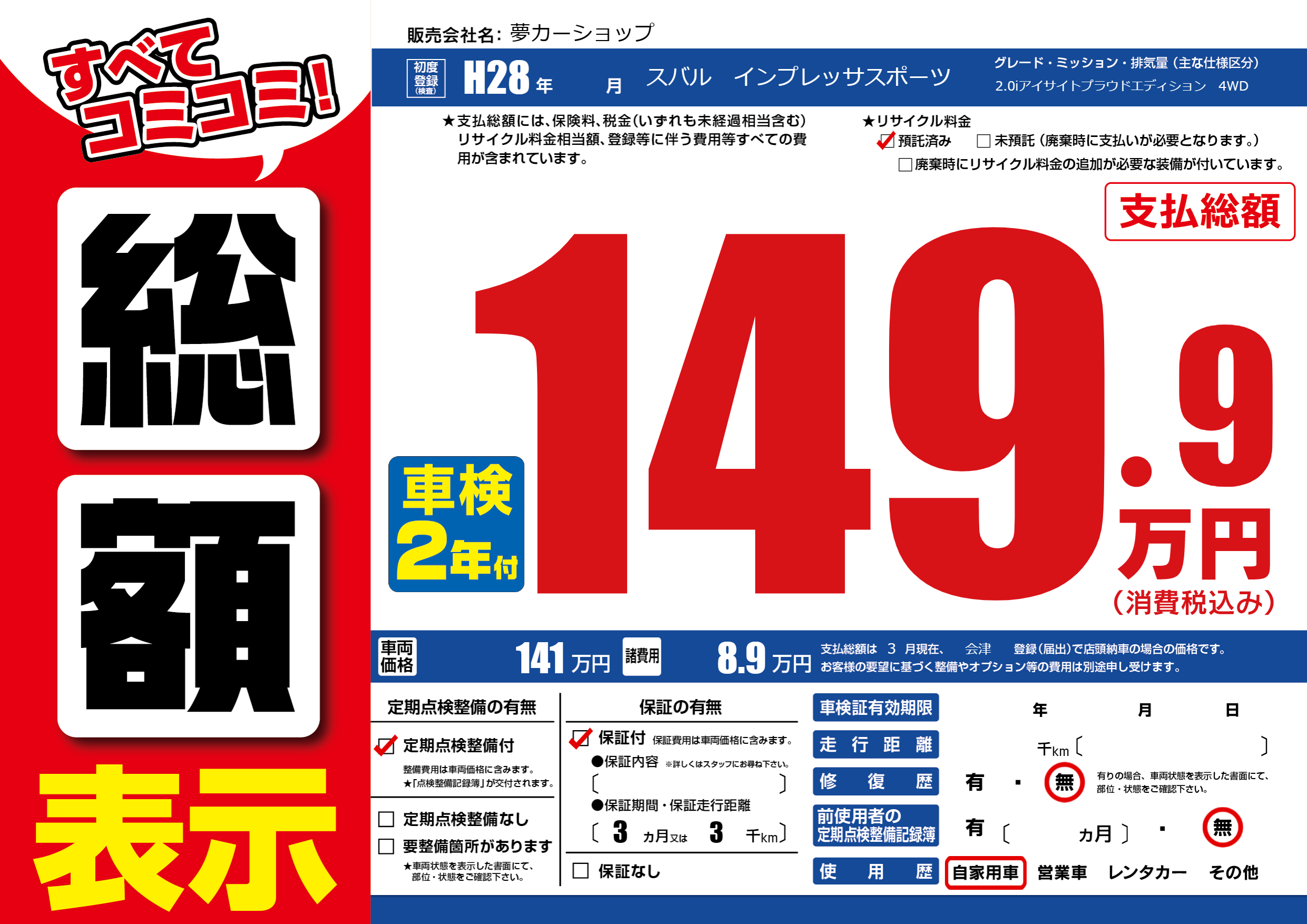 保証付き 保証内容(---) 3ヶ月または(3)千kmまで |