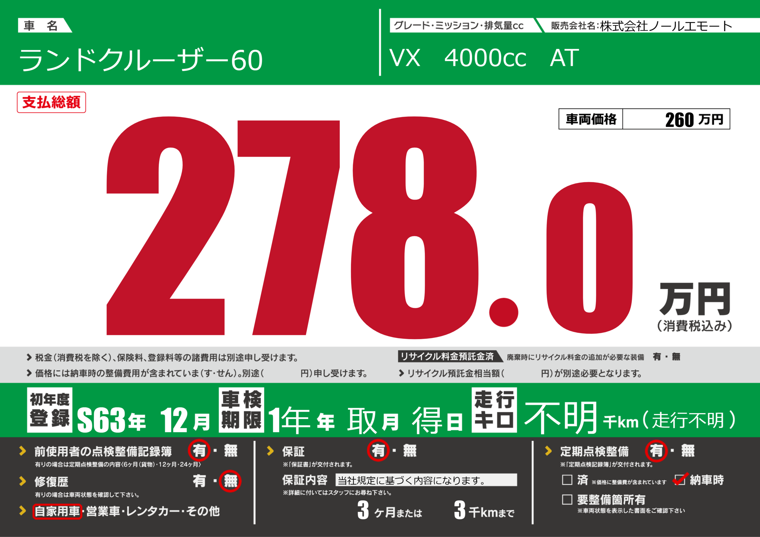 | 車名 | ランドクルーザー60 | グレード ミッション 排気量 |