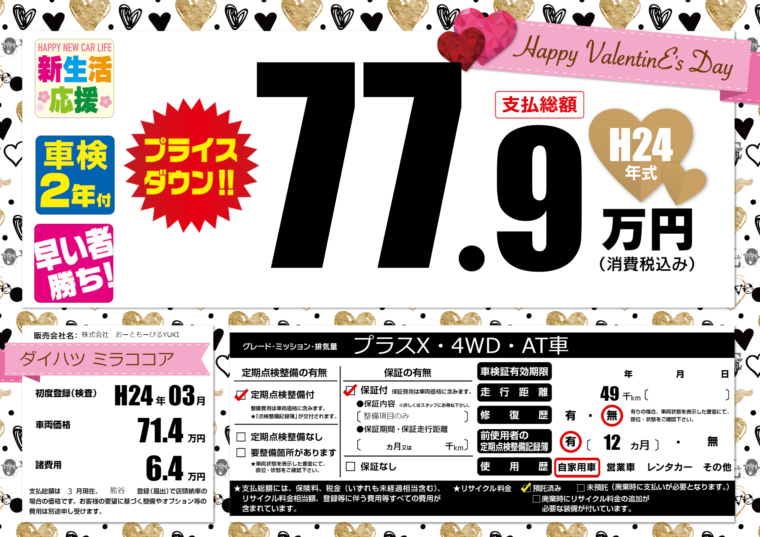 | 車名 | ダイハツ ミラココア | グレード ミッション 排気量 |