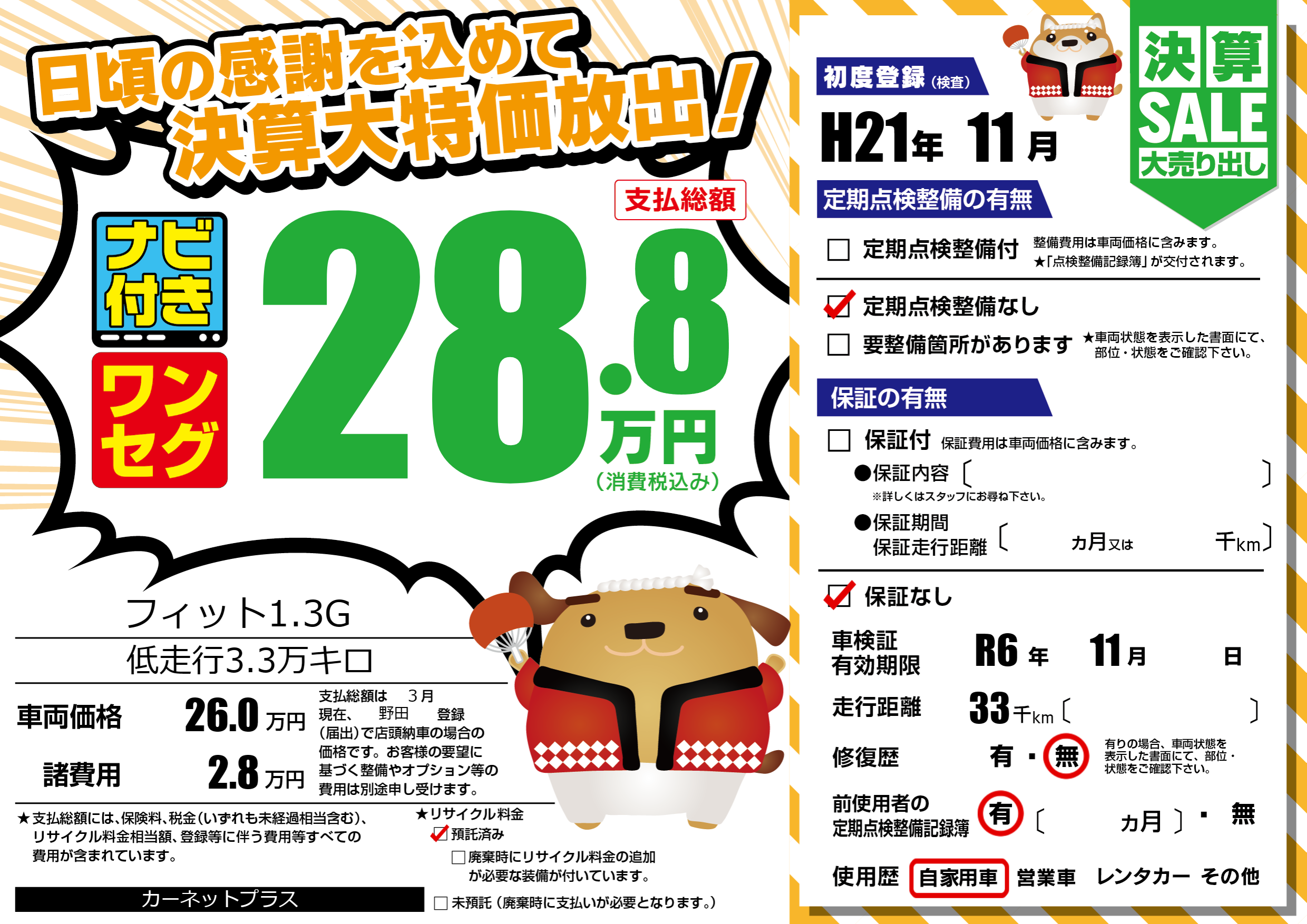 | 車名 | フィット1.3G | グレード ミッション 排気量 |
