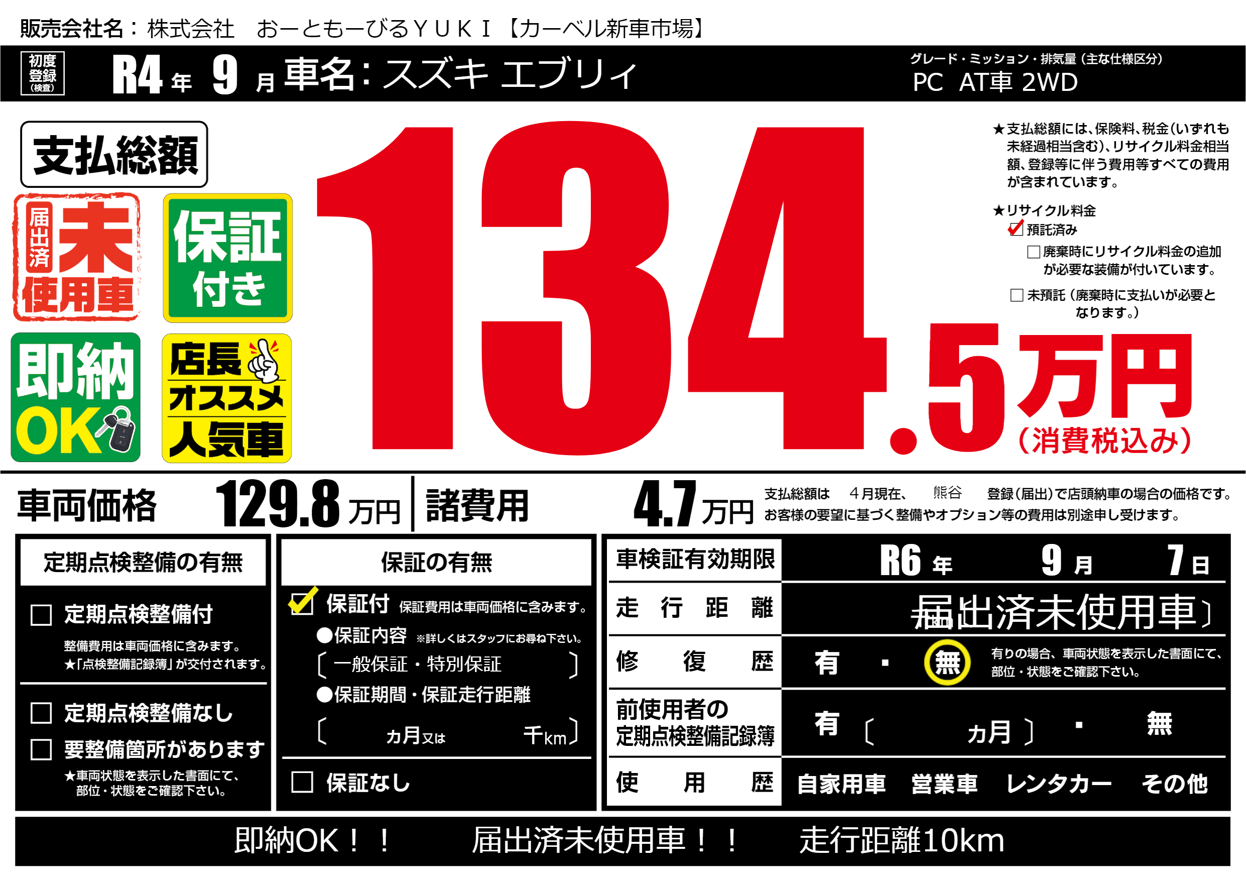 | 走行キロ | - | 初年度登録 | R4年9月 |