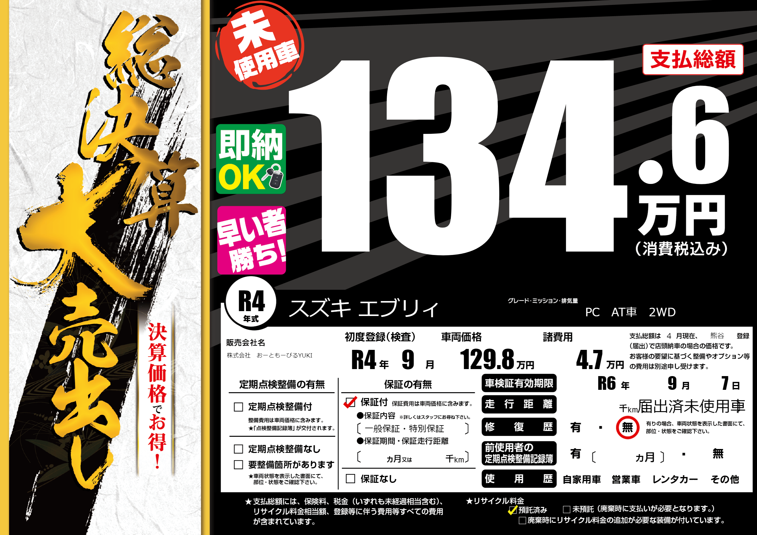 | 走行キロ | - | 初年度登録 | R4年9月 |