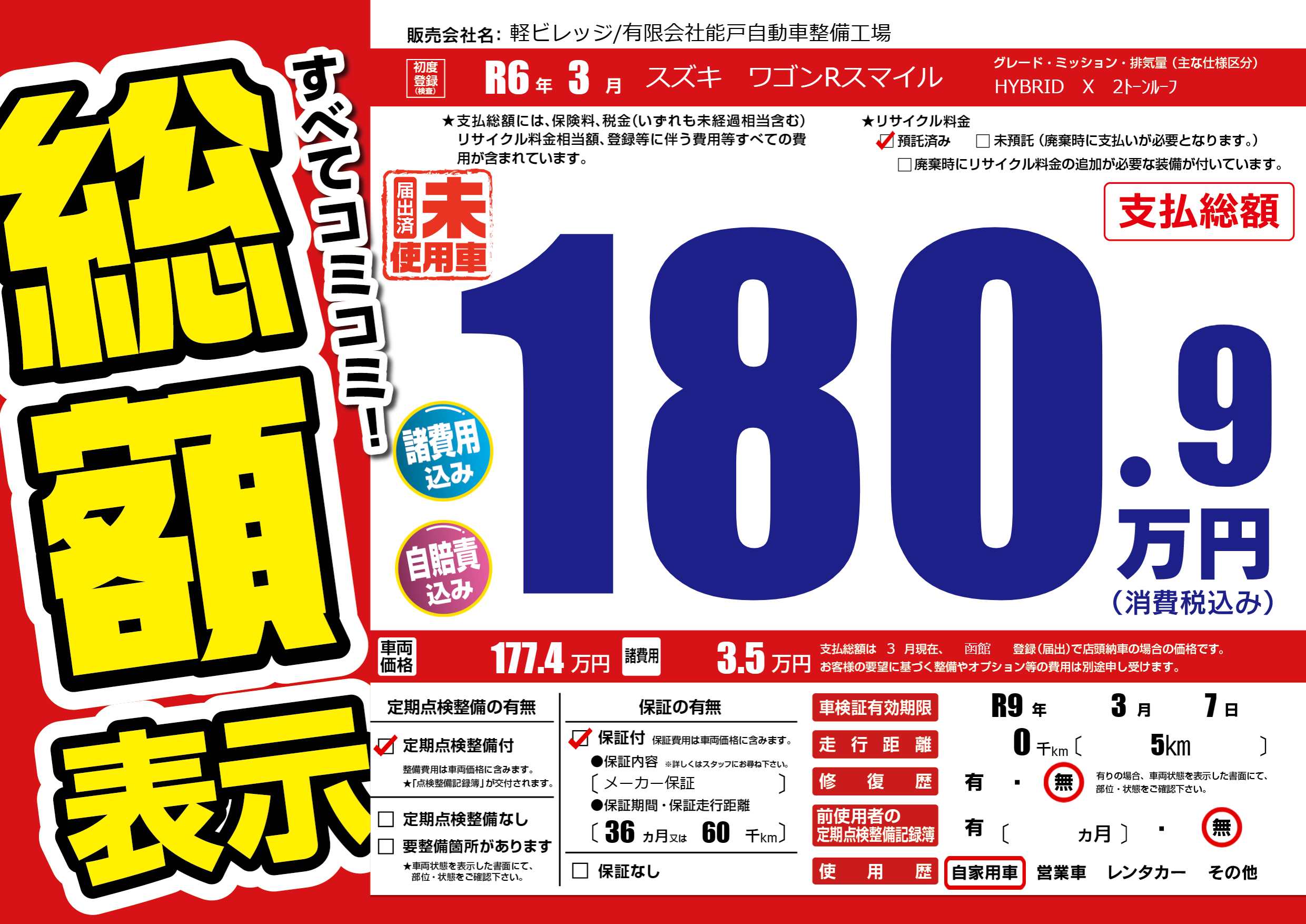 | 車名 | スズキ ワゴンRスマイル | グレード ミッション 排気量 |