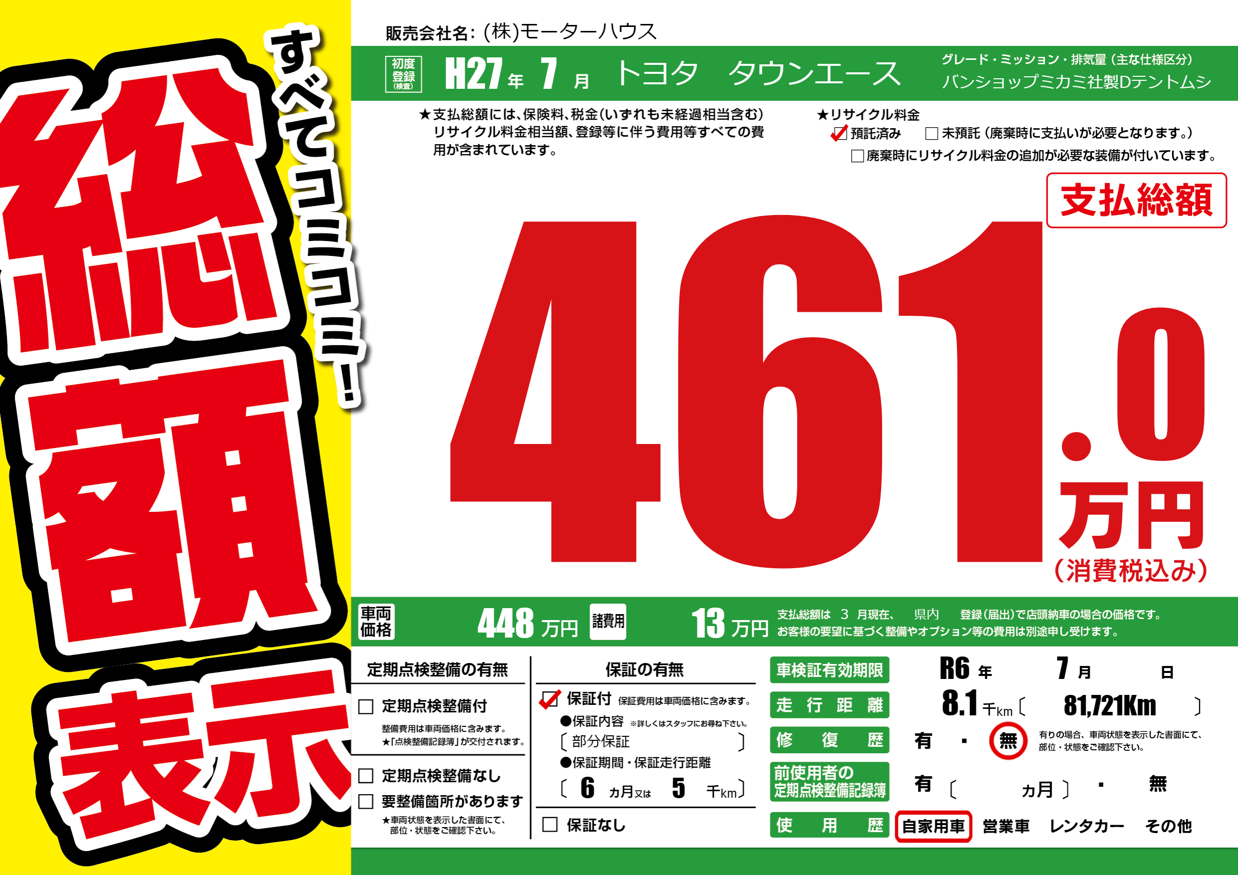 | 車名 | トヨタ タウンエース | グレード ミッション 排気量 |