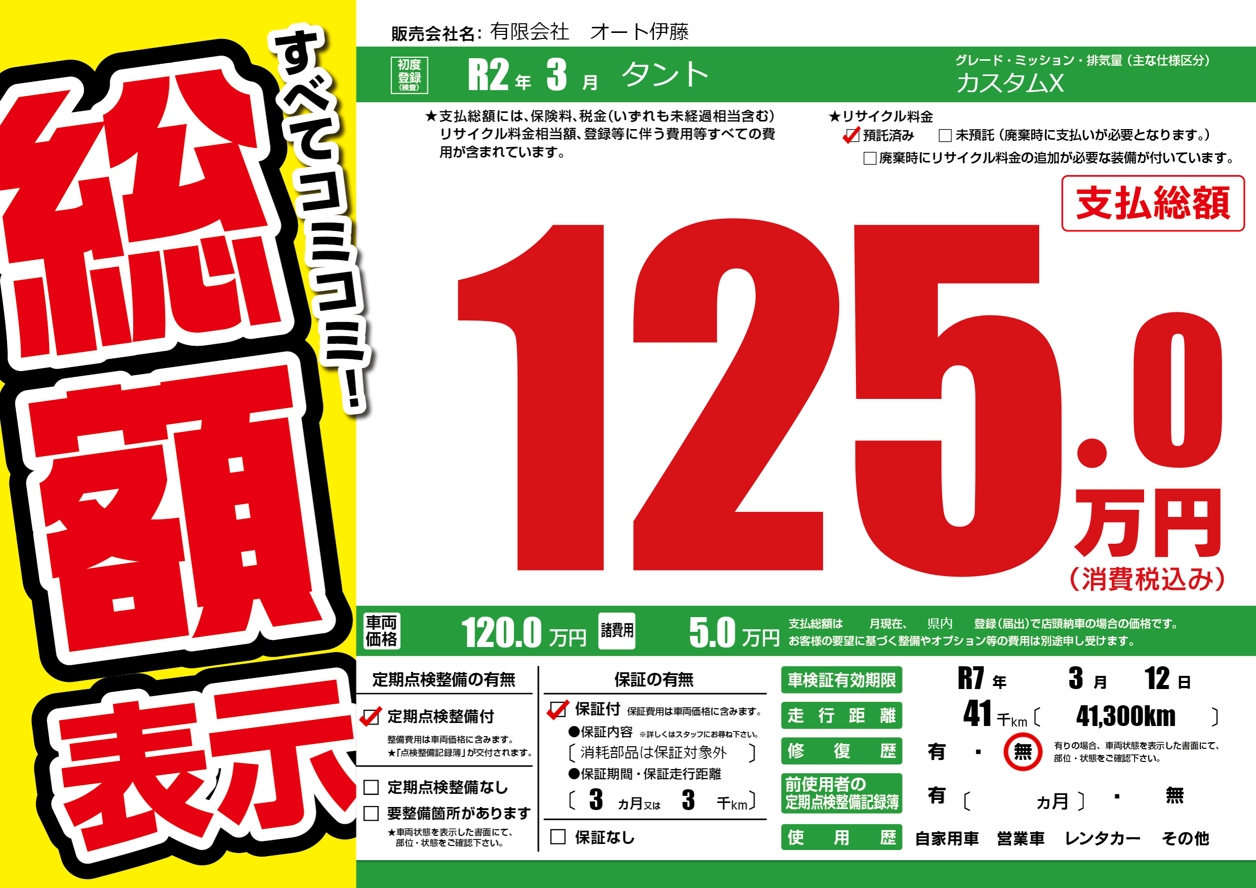 | 車検制限 | R7年 3月 12日 | ||