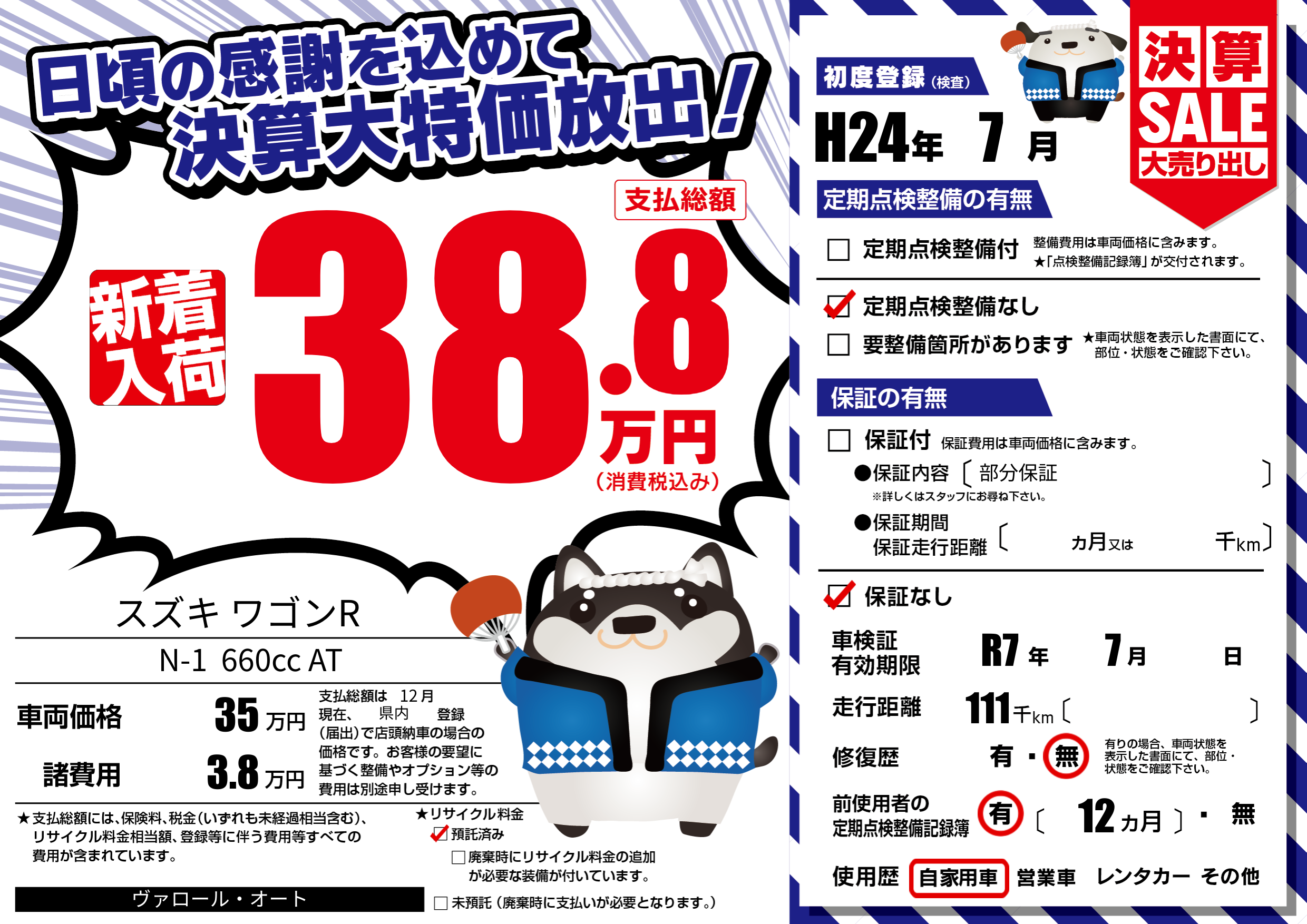 | 走行キロ | 11.1万km | 初年度登録 | H24年7月 |