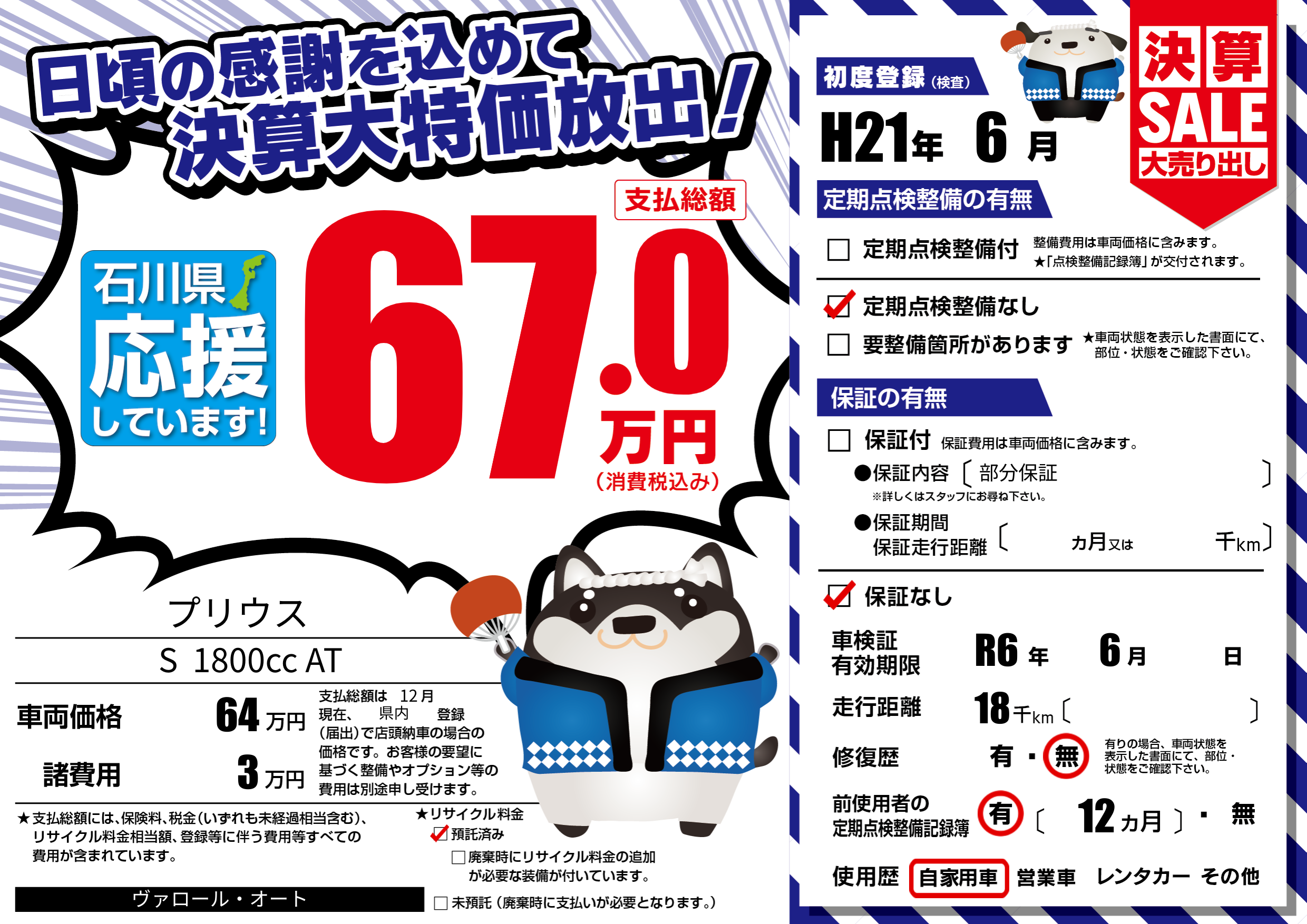 | 車名 | プリウス | グレード ミッション 排気量 |