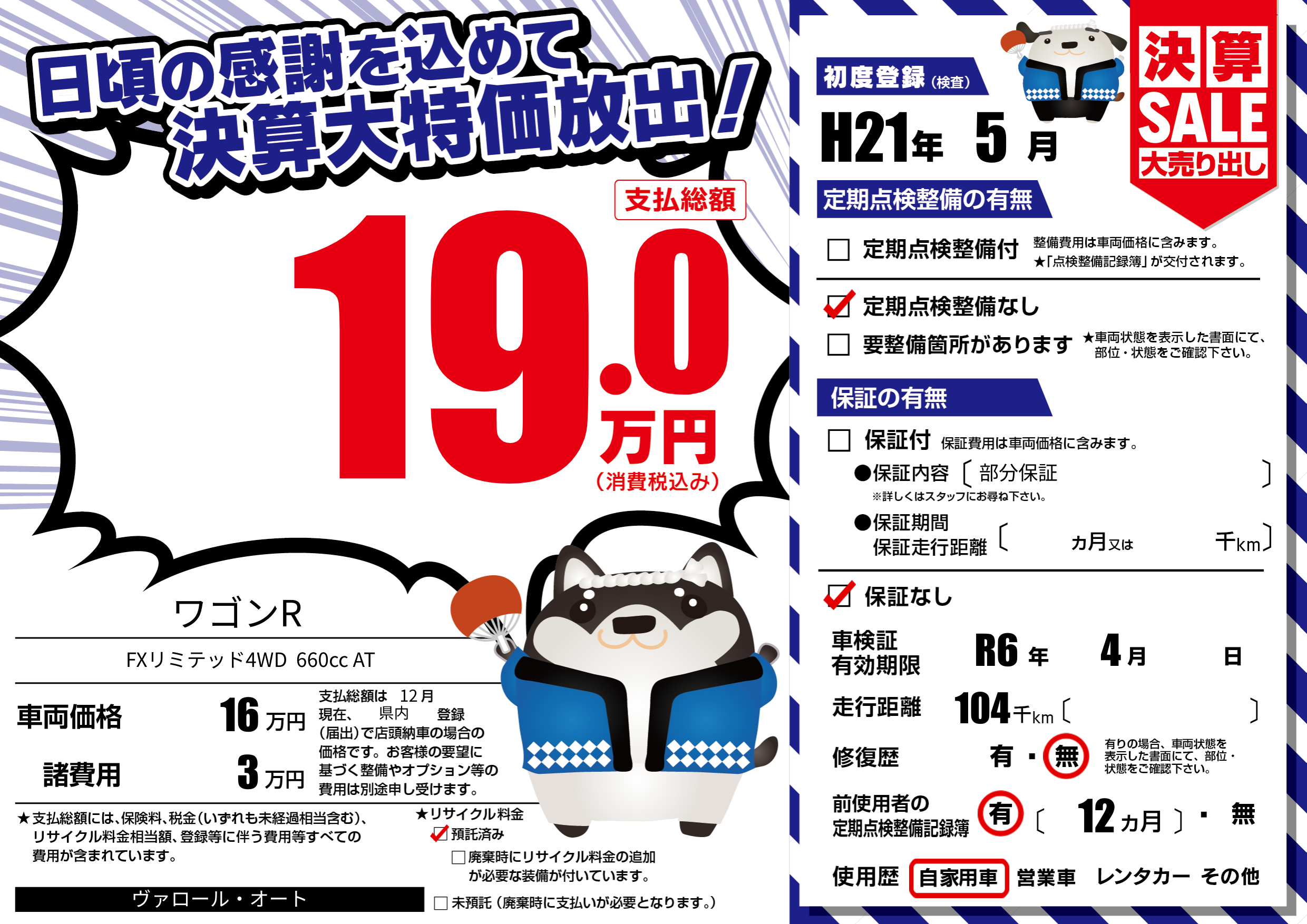 | 車名 | ワゴンR | グレード ミッション 排気量 |
