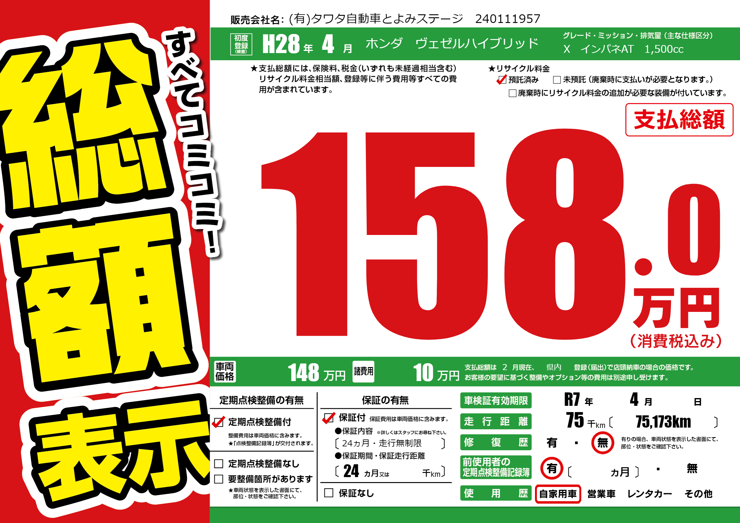 なし | 車検制限 | R7年4月---月 |