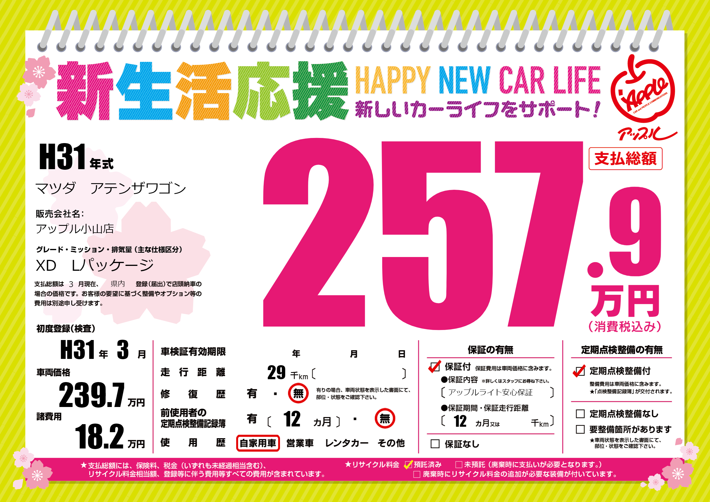 | 走行キロ | 2.9万km | 初年度登録 | H31年3月 |