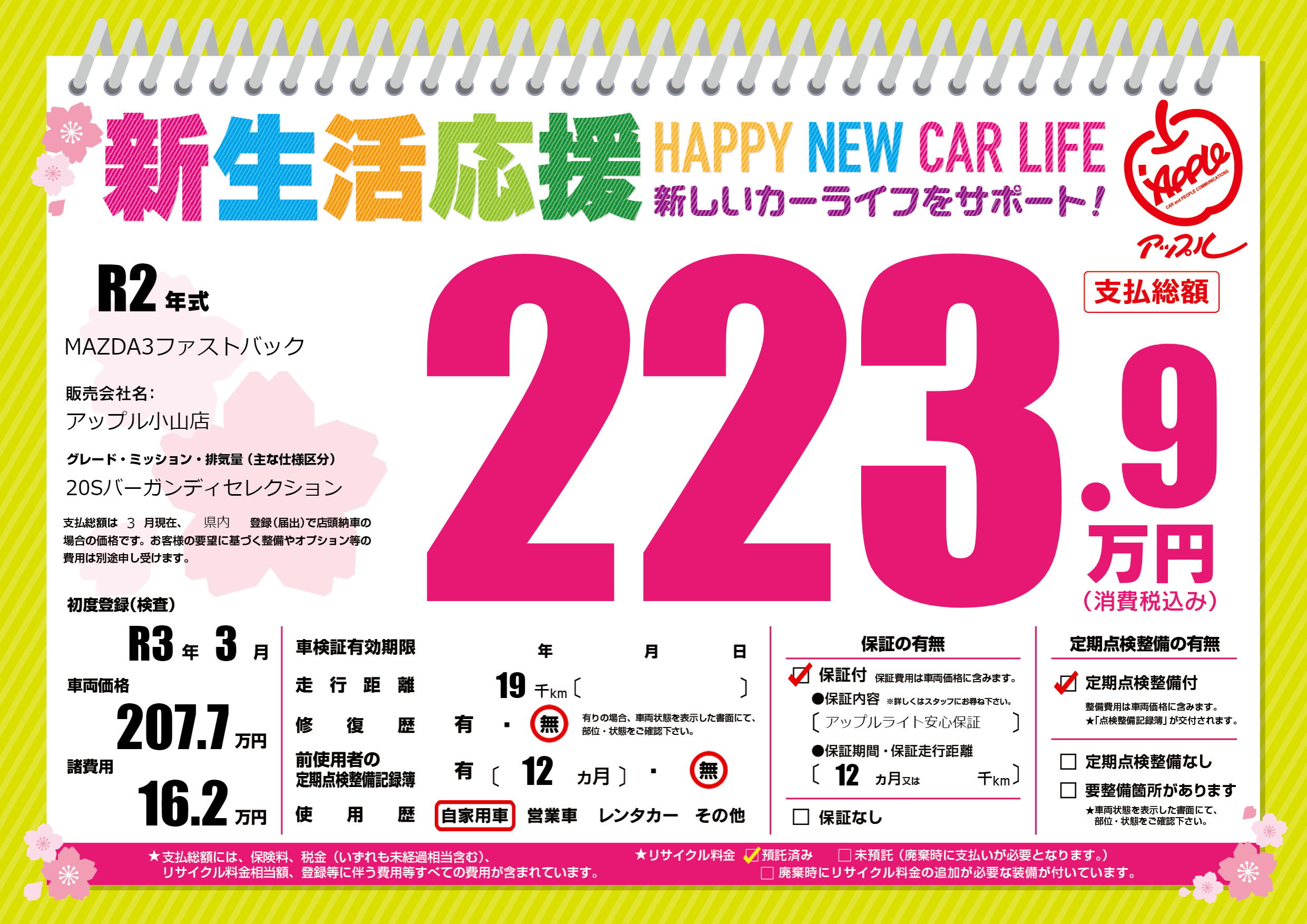 | 車名 | MAZDA3ファストバック | グレード ミッション 排気量 |