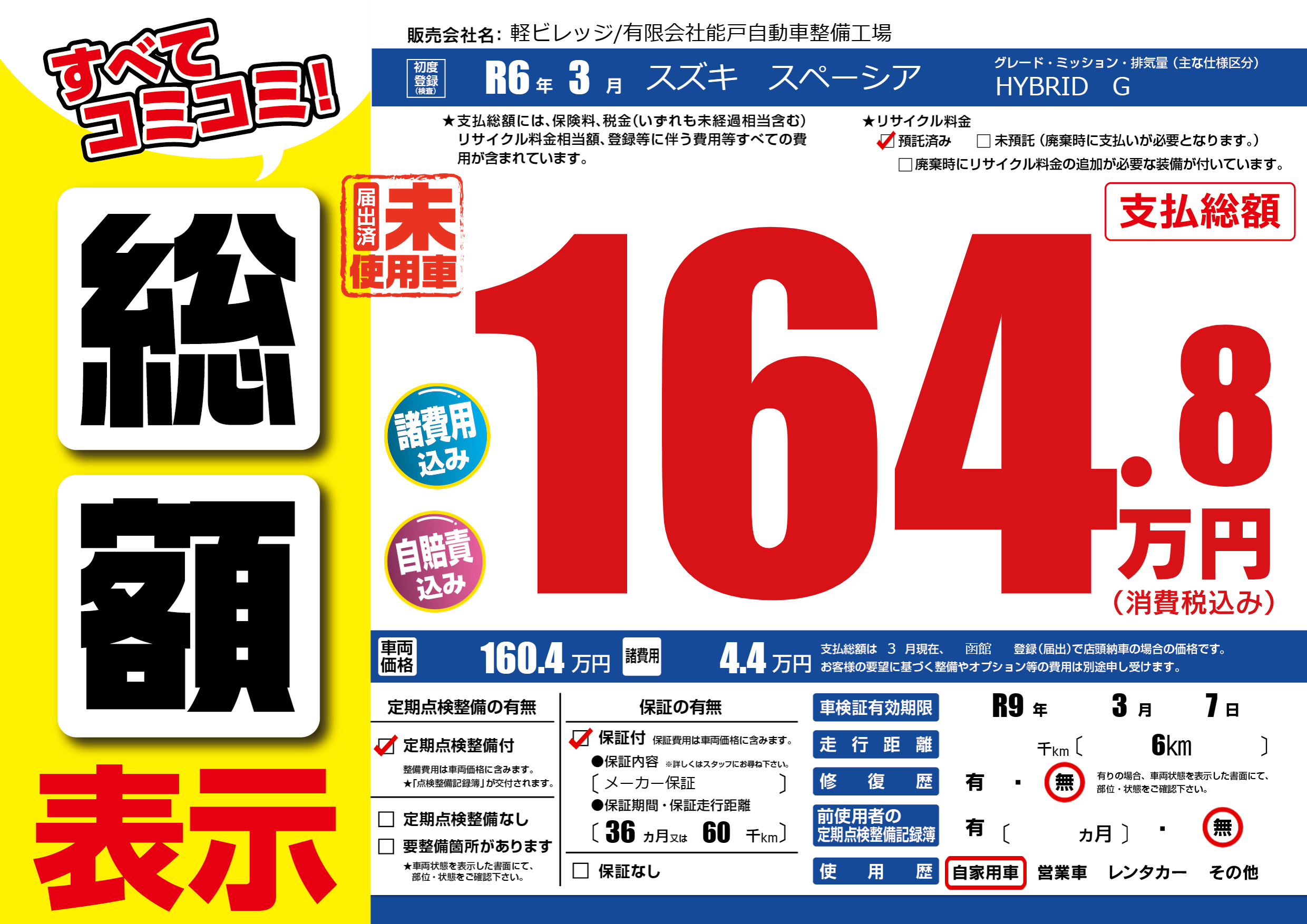 | 走行キロ | - | 初年度登録 | R6年3月 |