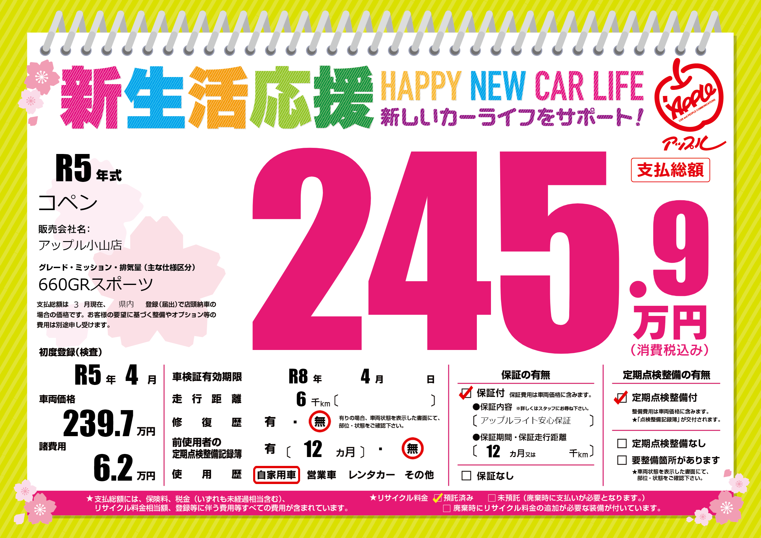 なし | 車検制限 | R8年4月---月 |