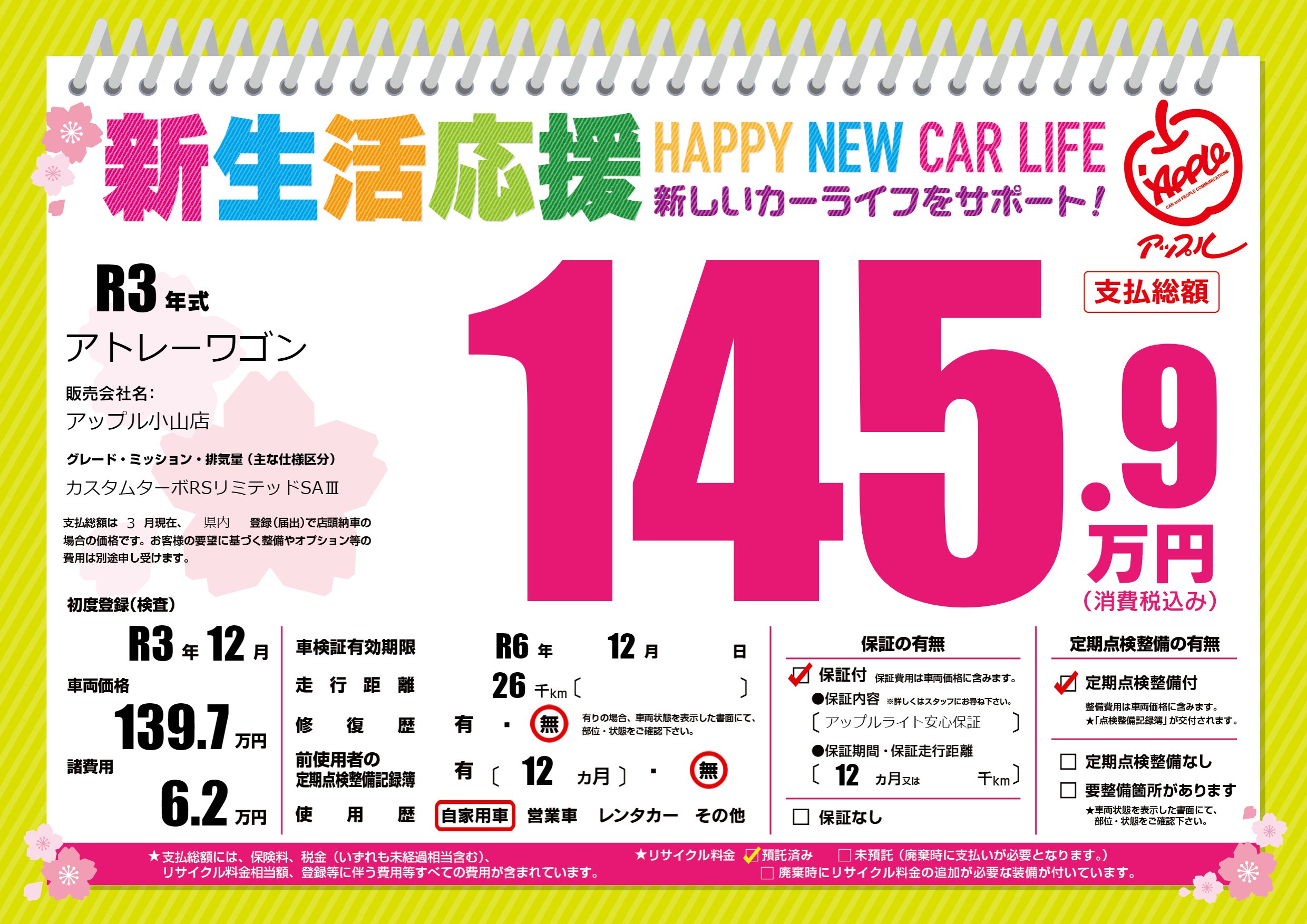 保証付き 保証内容(アップルライト安心保証) 12ヶ月または()千kmまで |