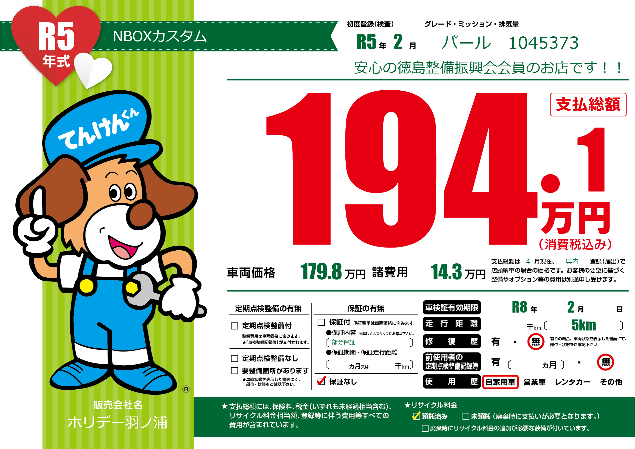 | 車名 | NBOXカスタム | グレード ミッション 排気量 |