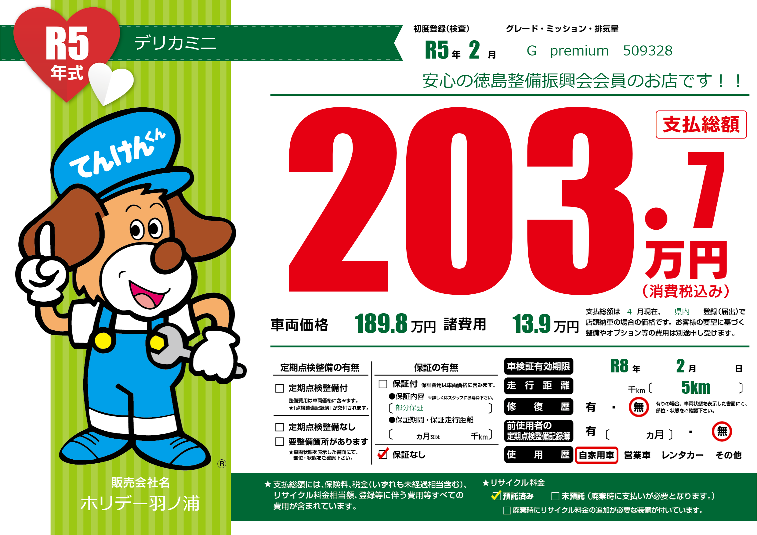 | 走行キロ | - | 初年度登録 | R5年2月 |