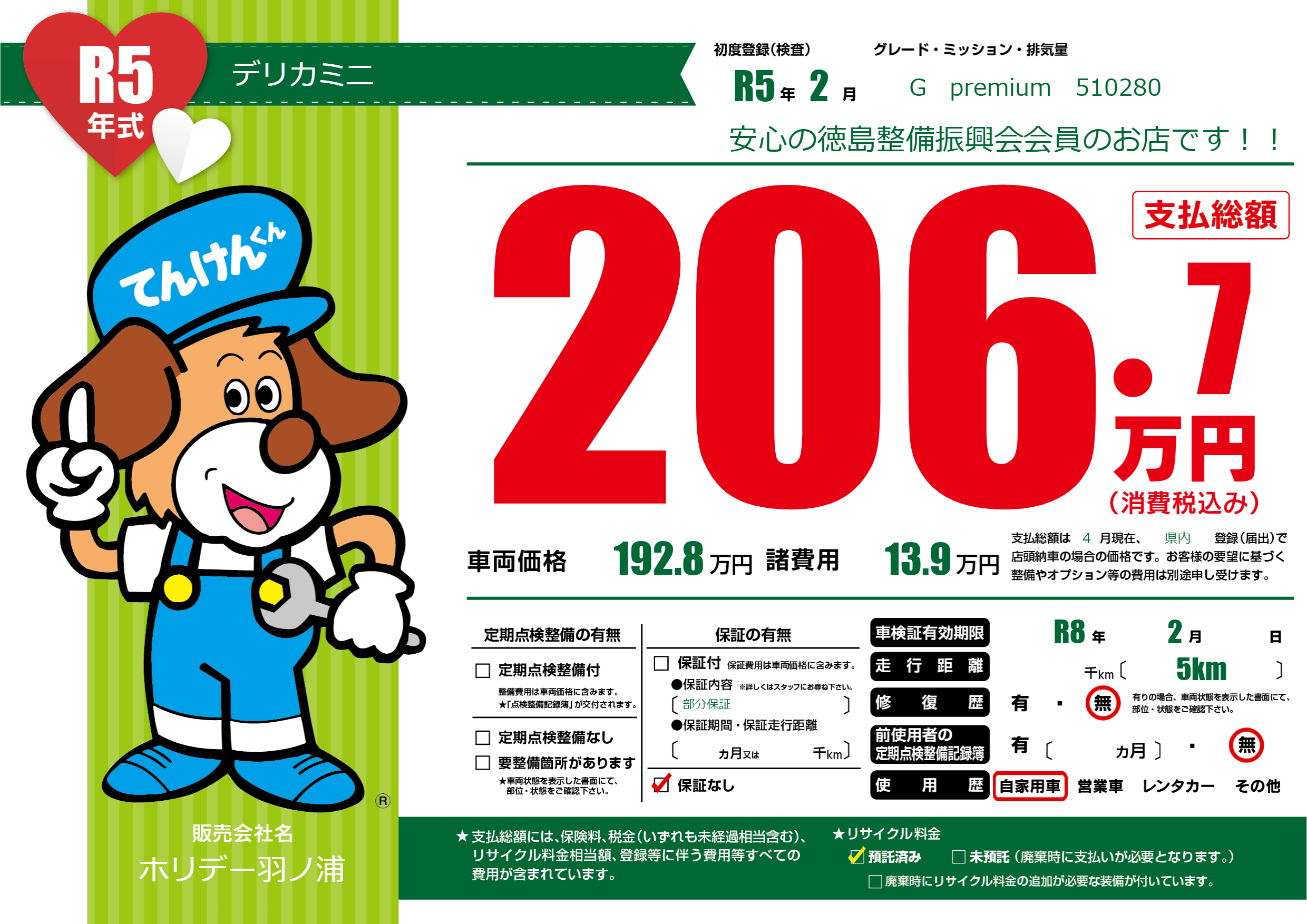 | 走行キロ | - | 初年度登録 | R5年2月 |