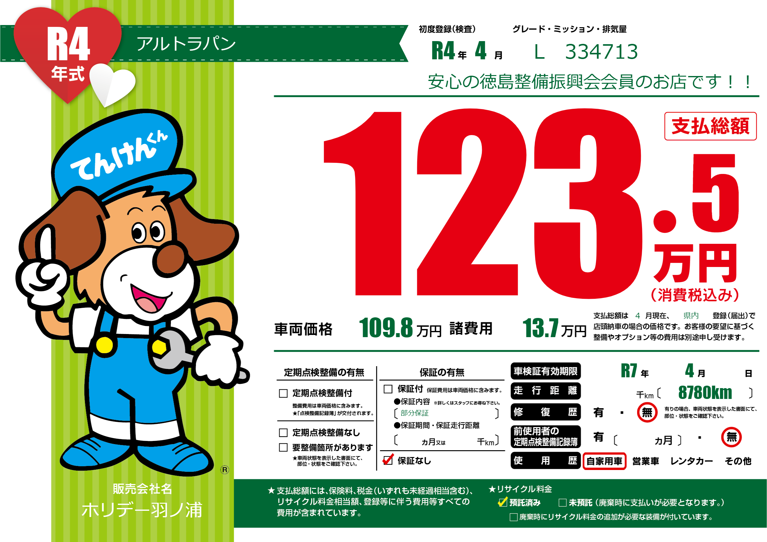 なし | 車検制限 | R7年4月---月 |