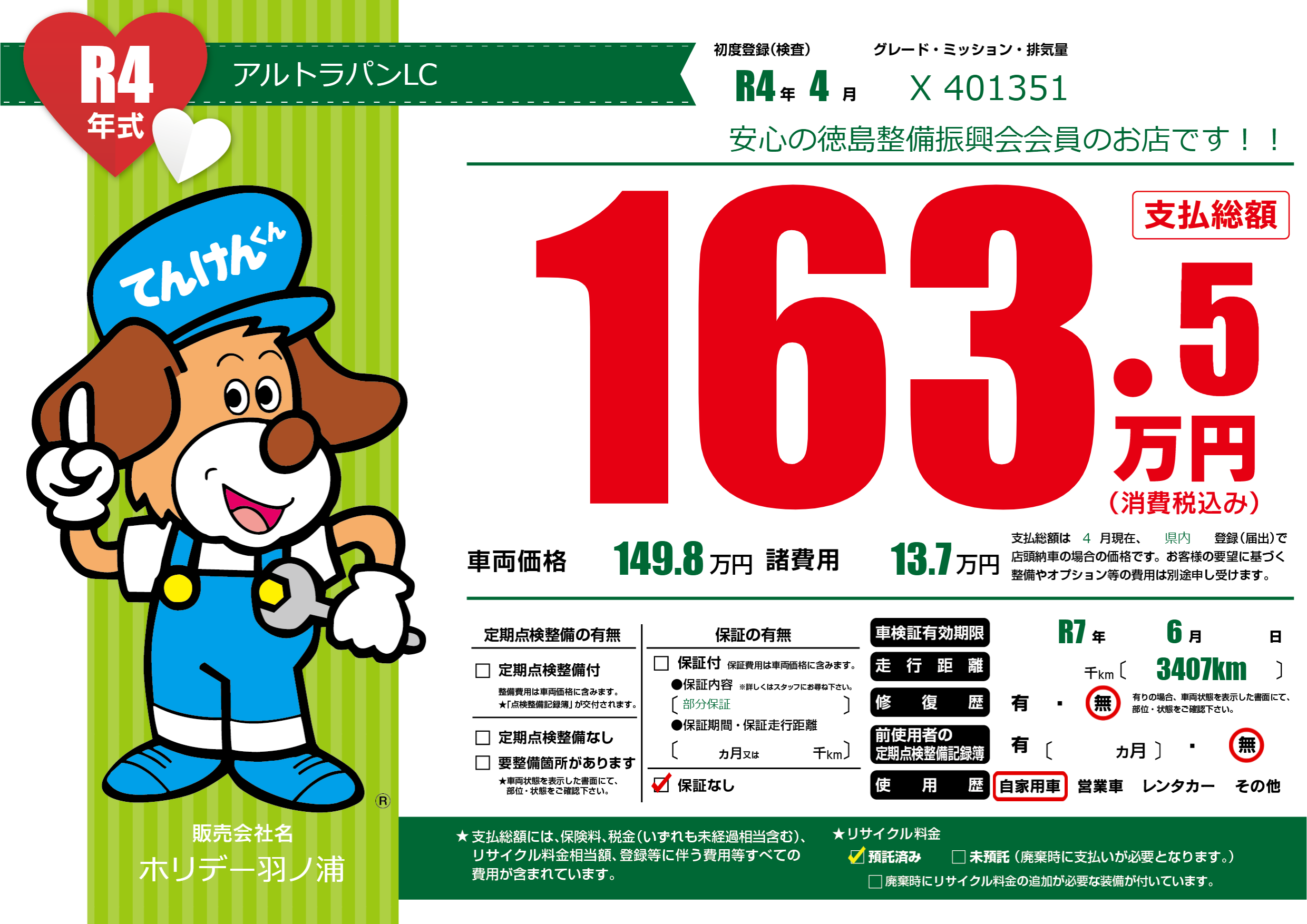| 走行キロ | - | 初年度登録 | R4年4月 |