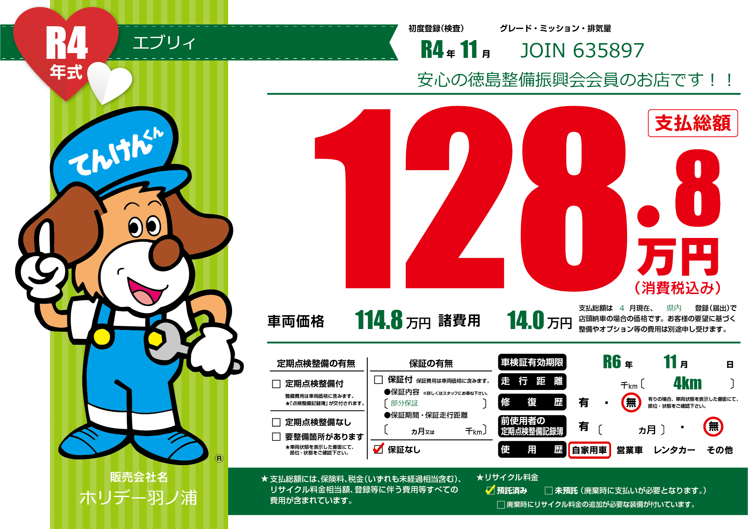 | 車名 | エブリィ | グレード ミッション 排気量 |