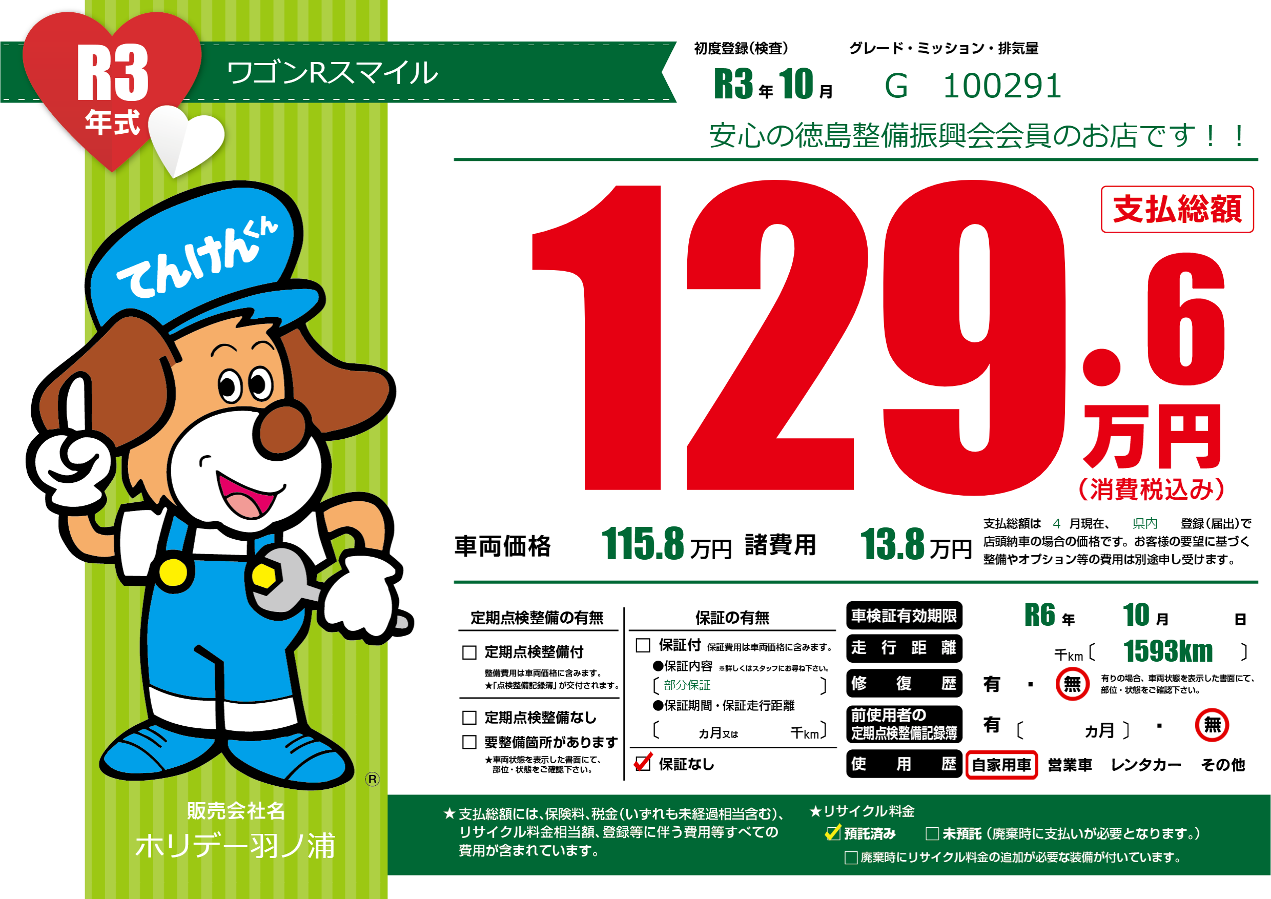 | 車検制限 | R6年 10月 - 日 | ||