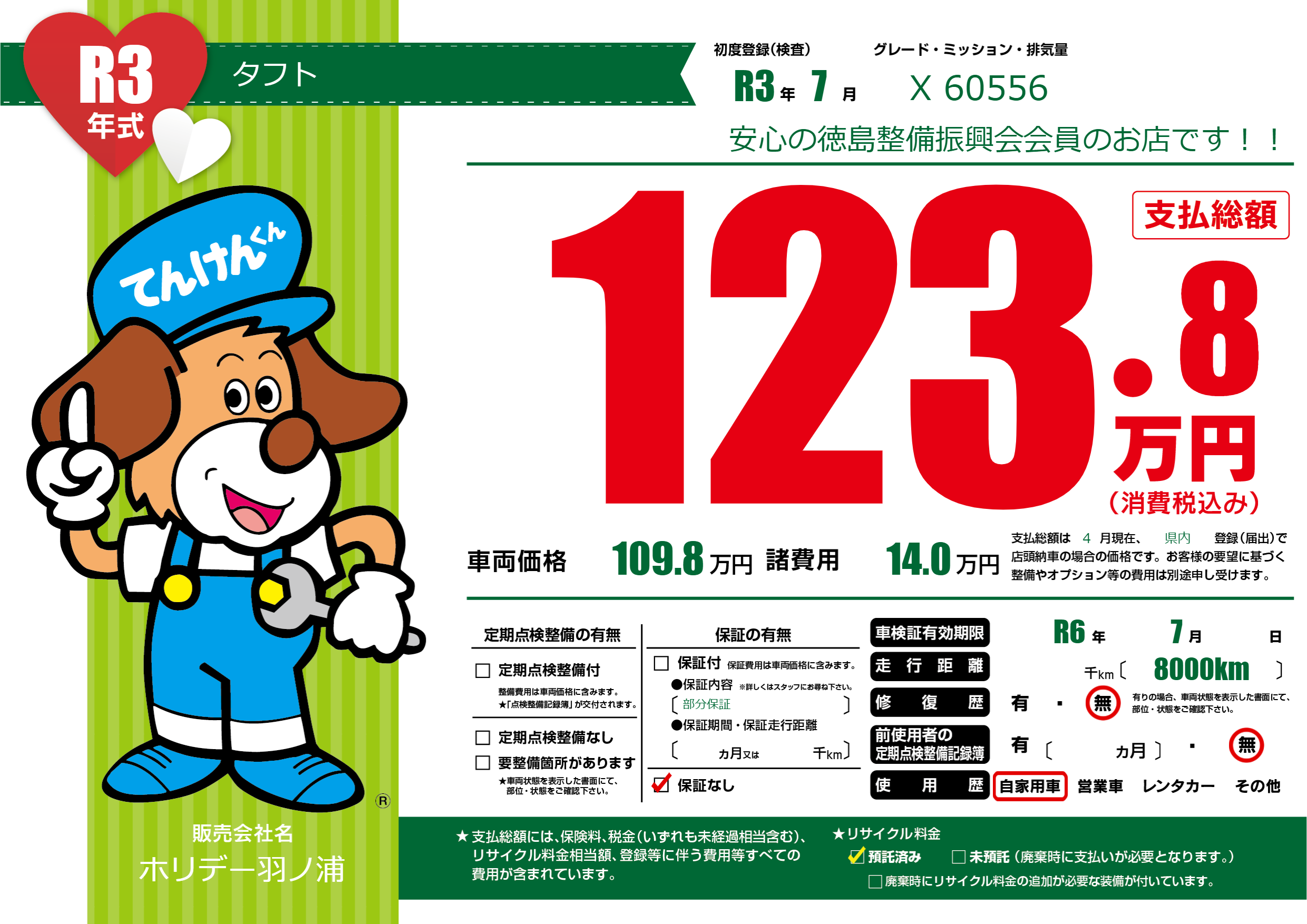 | 走行キロ | - | 初年度登録 | R3年7月 |