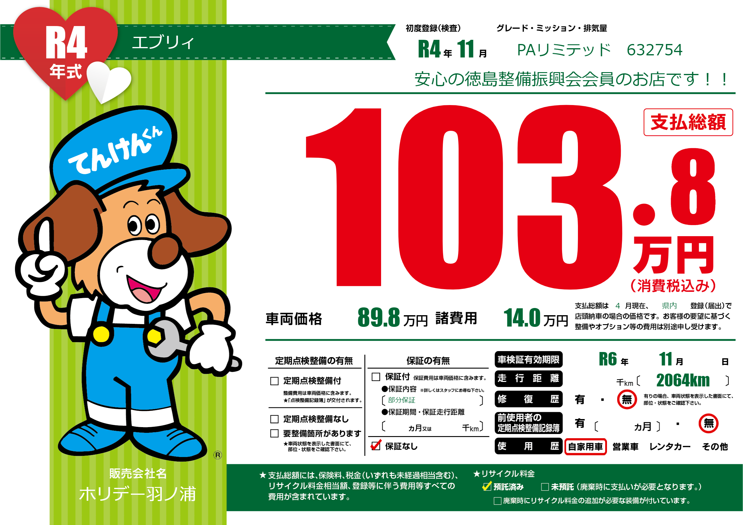 | 車検制限 | R6年 11月 - 日 | ||