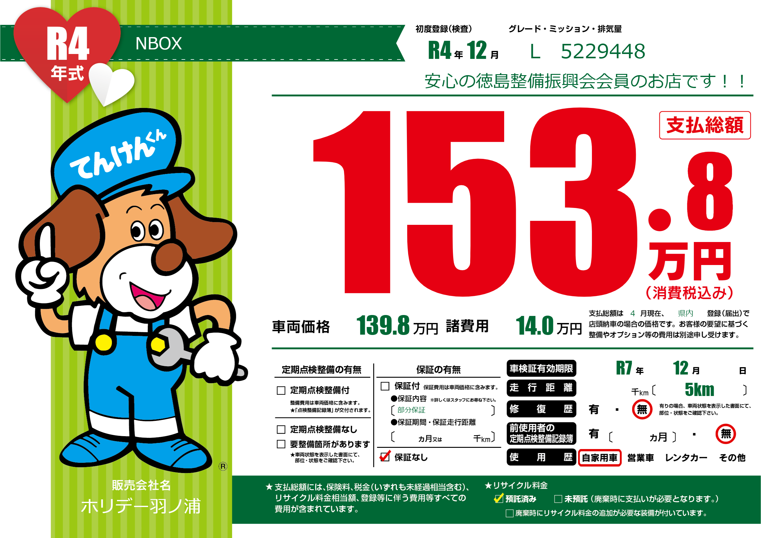 | 車名 | NBOX | グレード ミッション 排気量 |