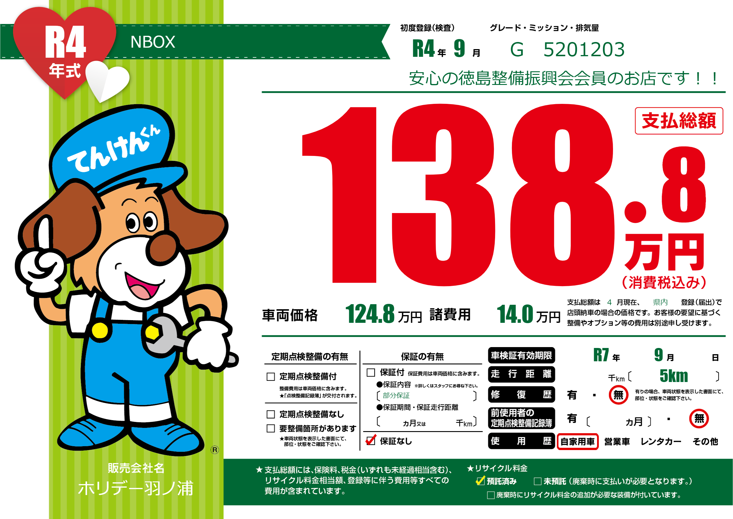 | 車名 | NBOX | グレード ミッション 排気量 |
