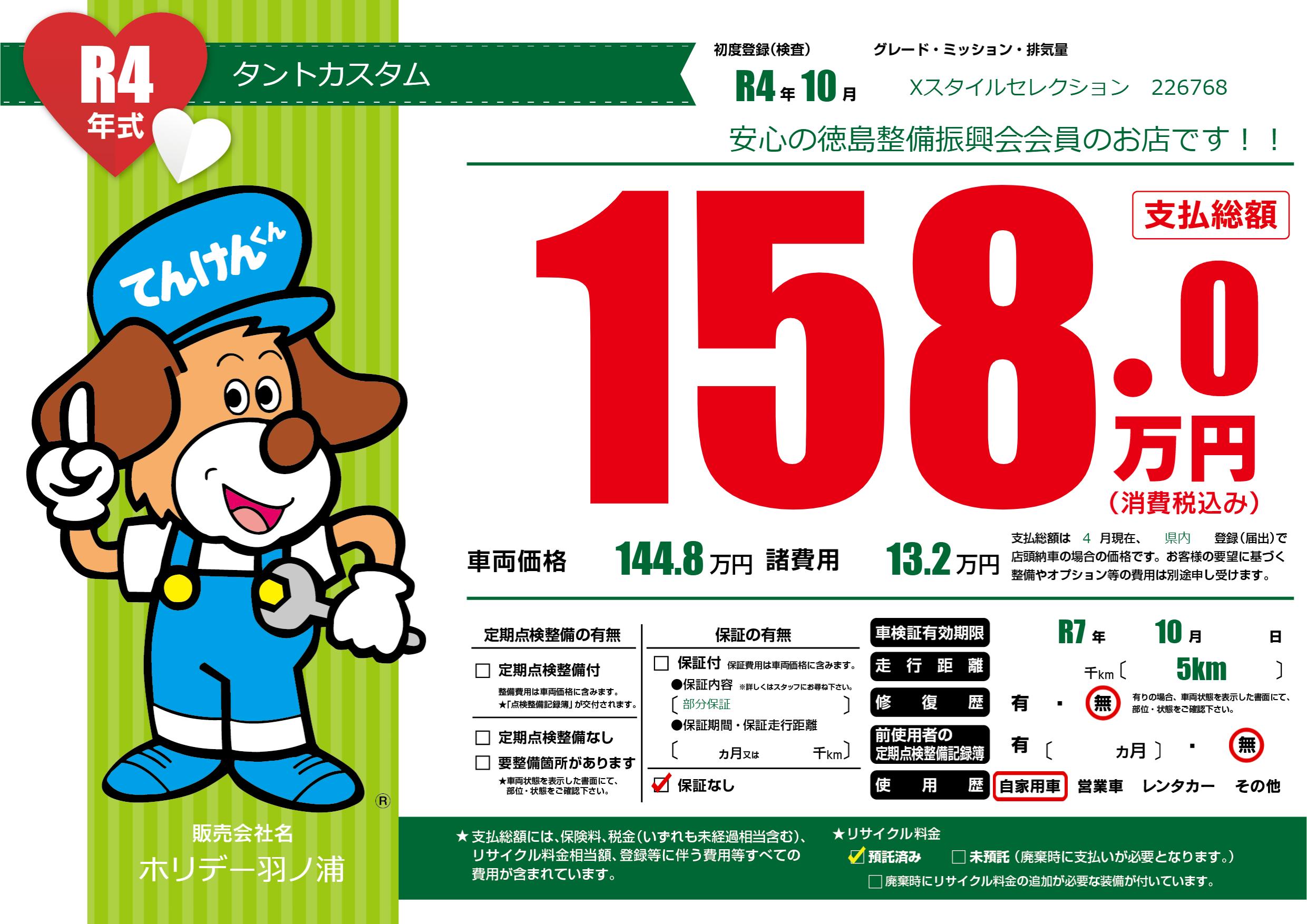 | 車検制限 | R7年 10月 - 日 | ||