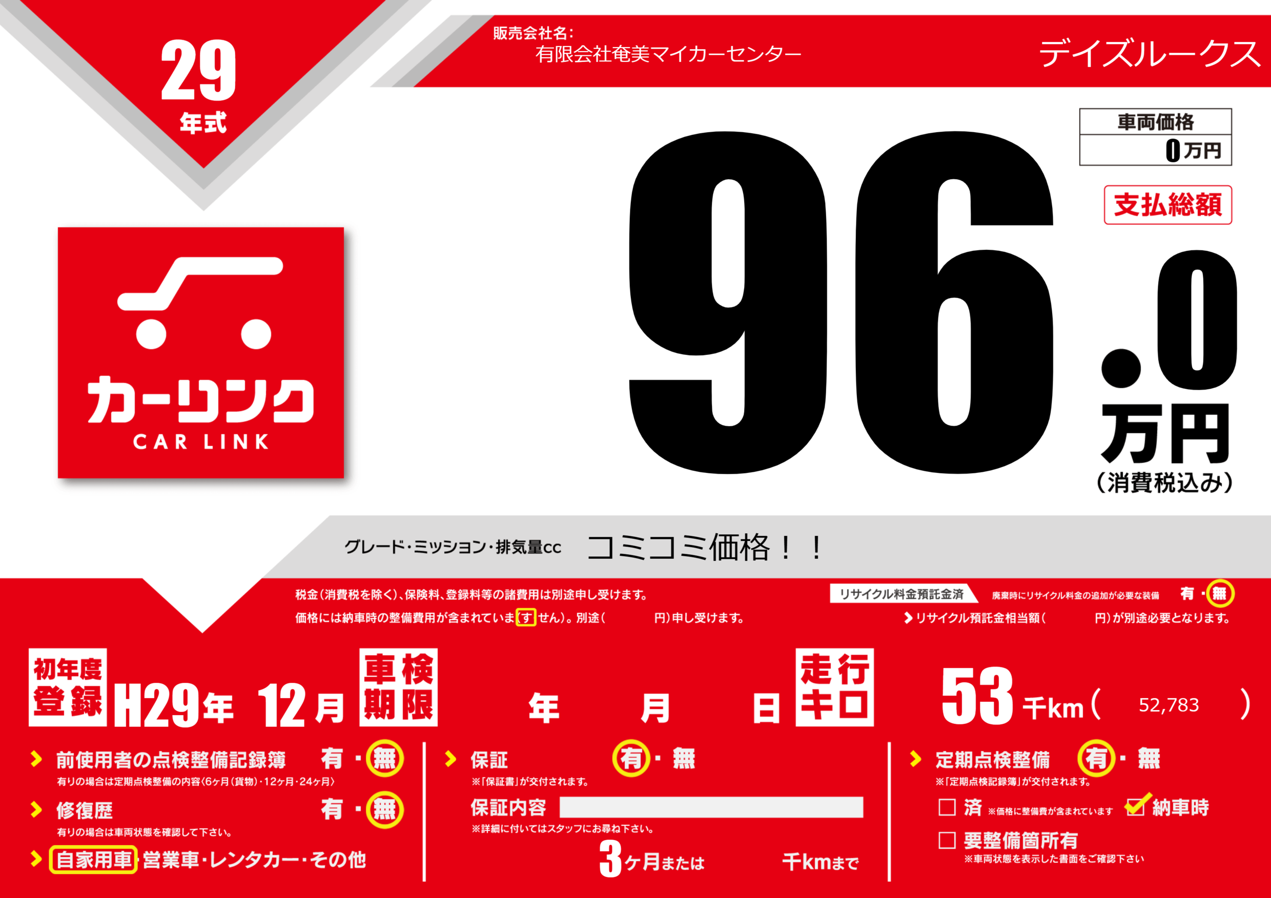 | 走行キロ | 5.3万km | 初年度登録 | H29年12月 |