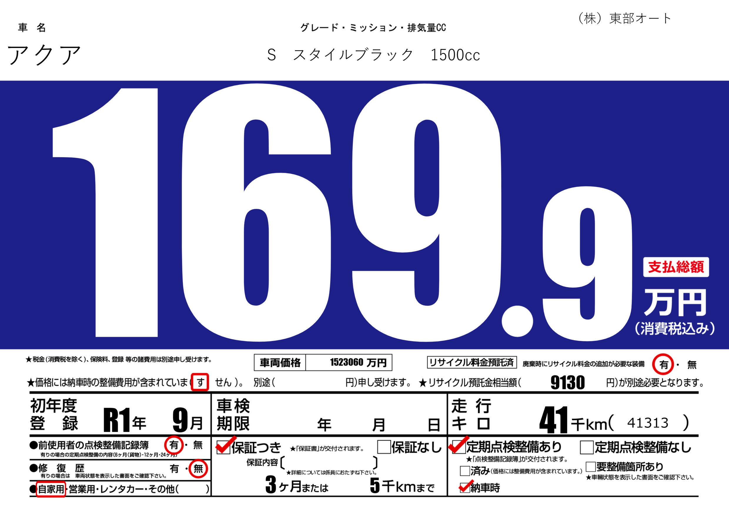 保証付き 保証内容(---) 3ヶ月または(5)千kmまで |