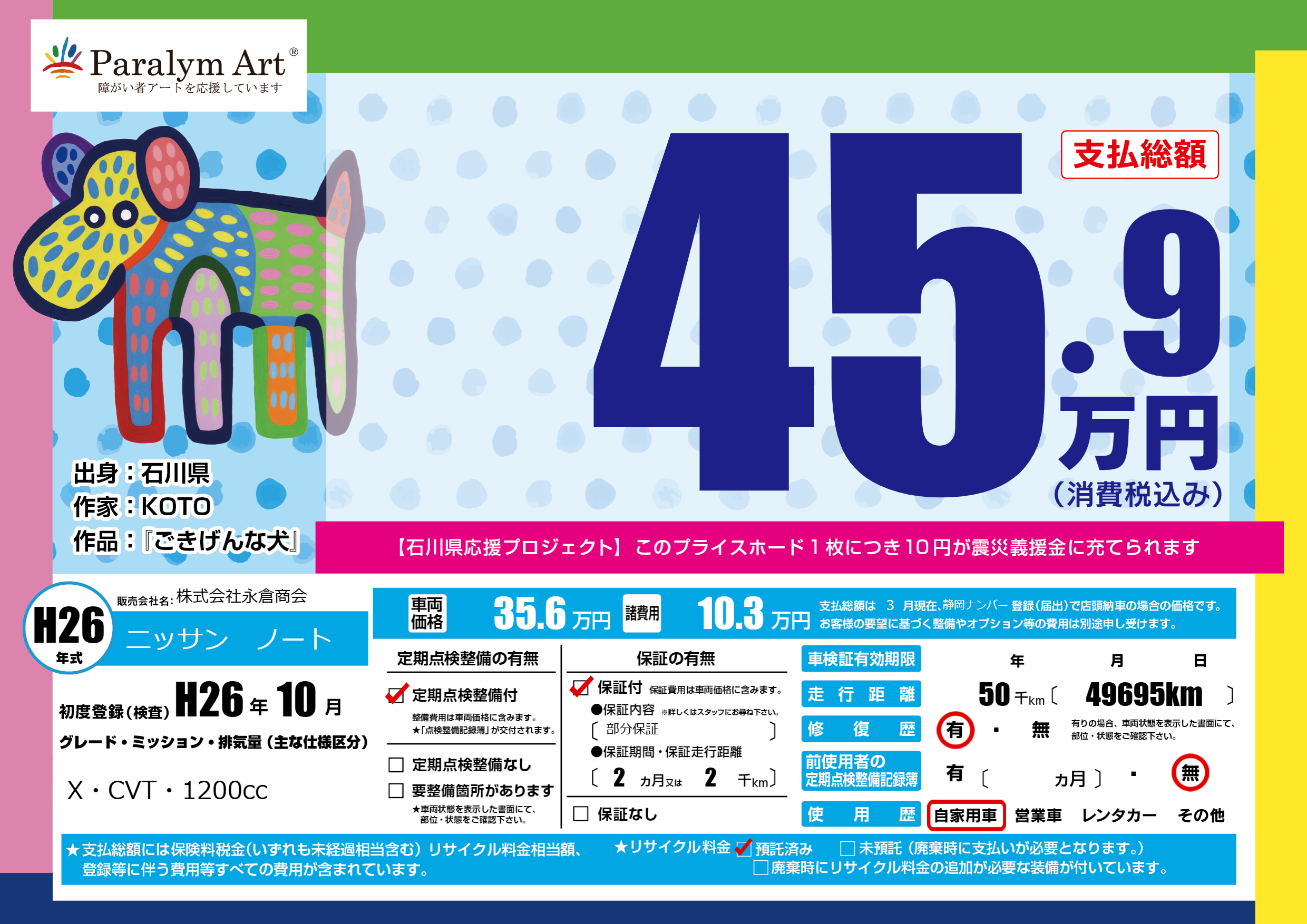 | 車名 | ニッサン ノート | グレード ミッション 排気量 |