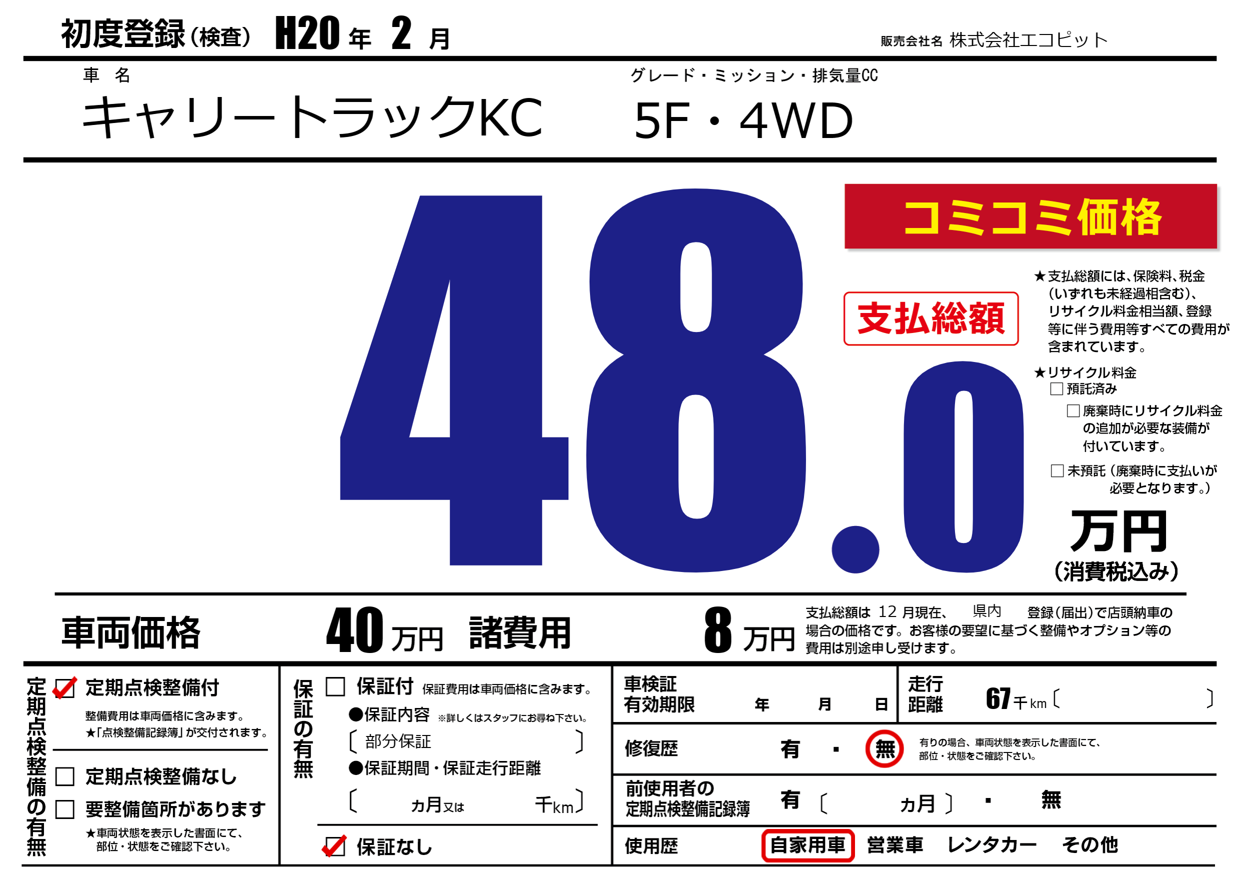 | 定期点検整備 | 定期点検整備あり | ||