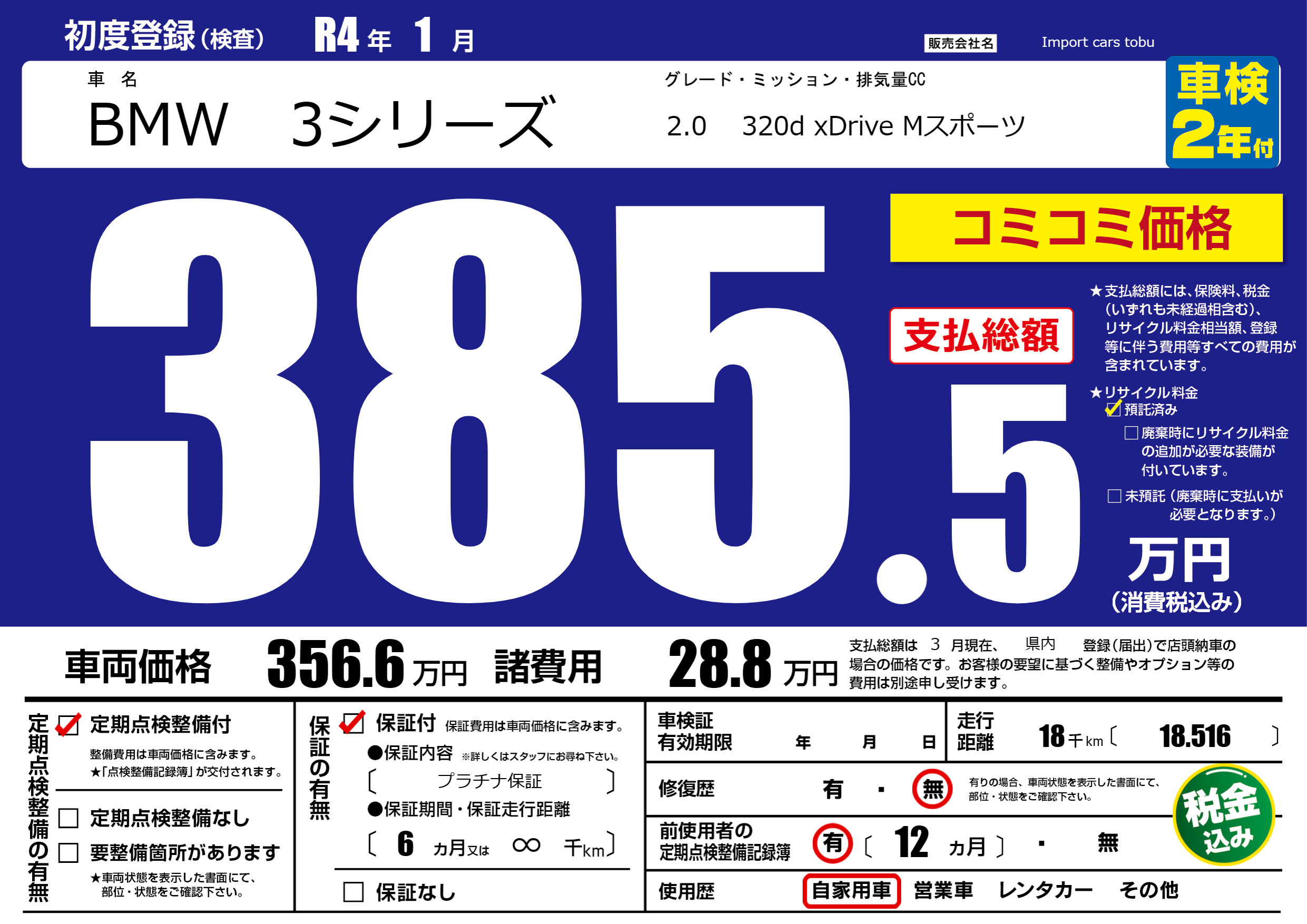 保証付き 保証内容( プラチナ保証) 6ヶ月または(∞)千kmまで |