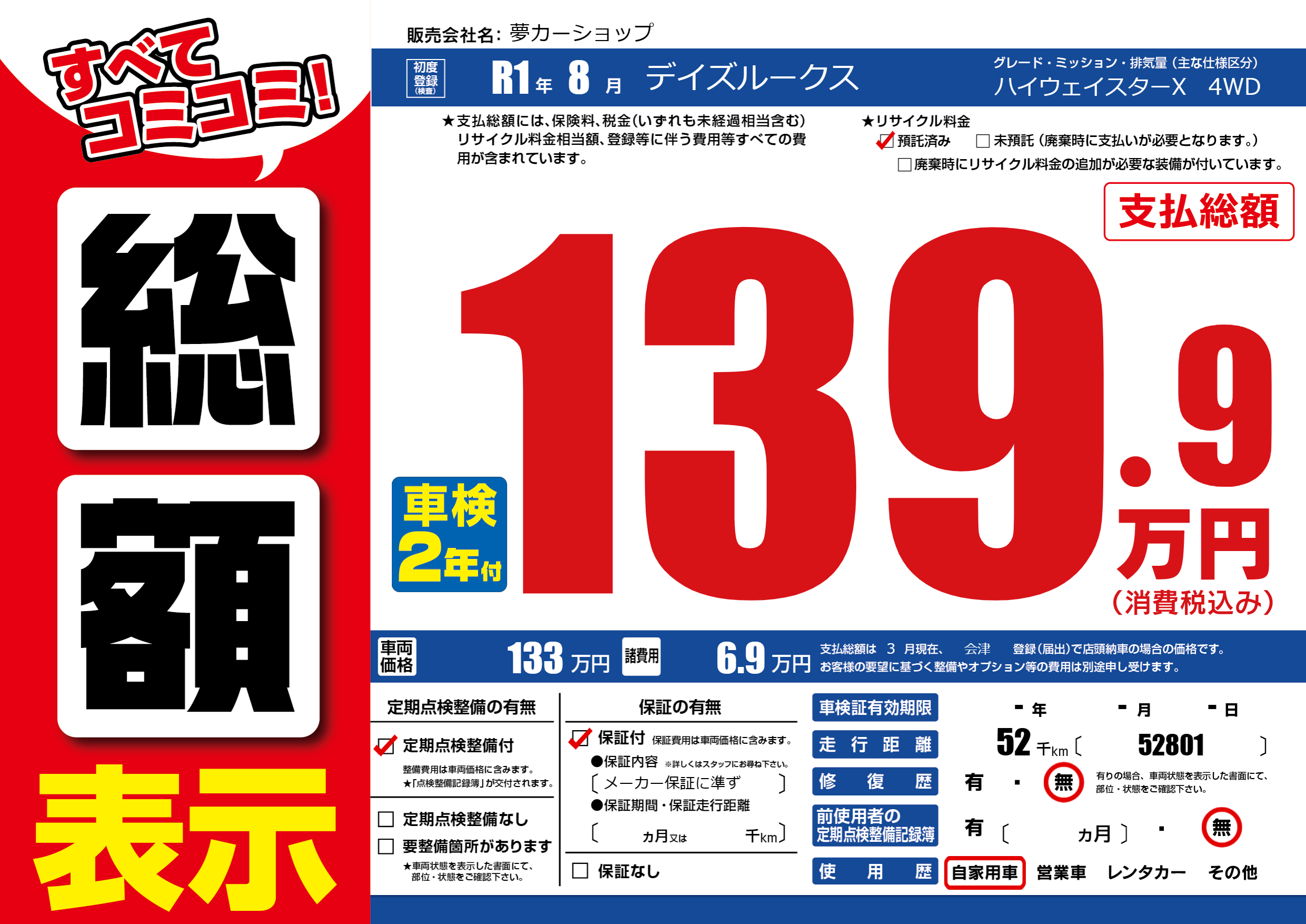 | 定期点検整備 | 定期点検整備あり | ||