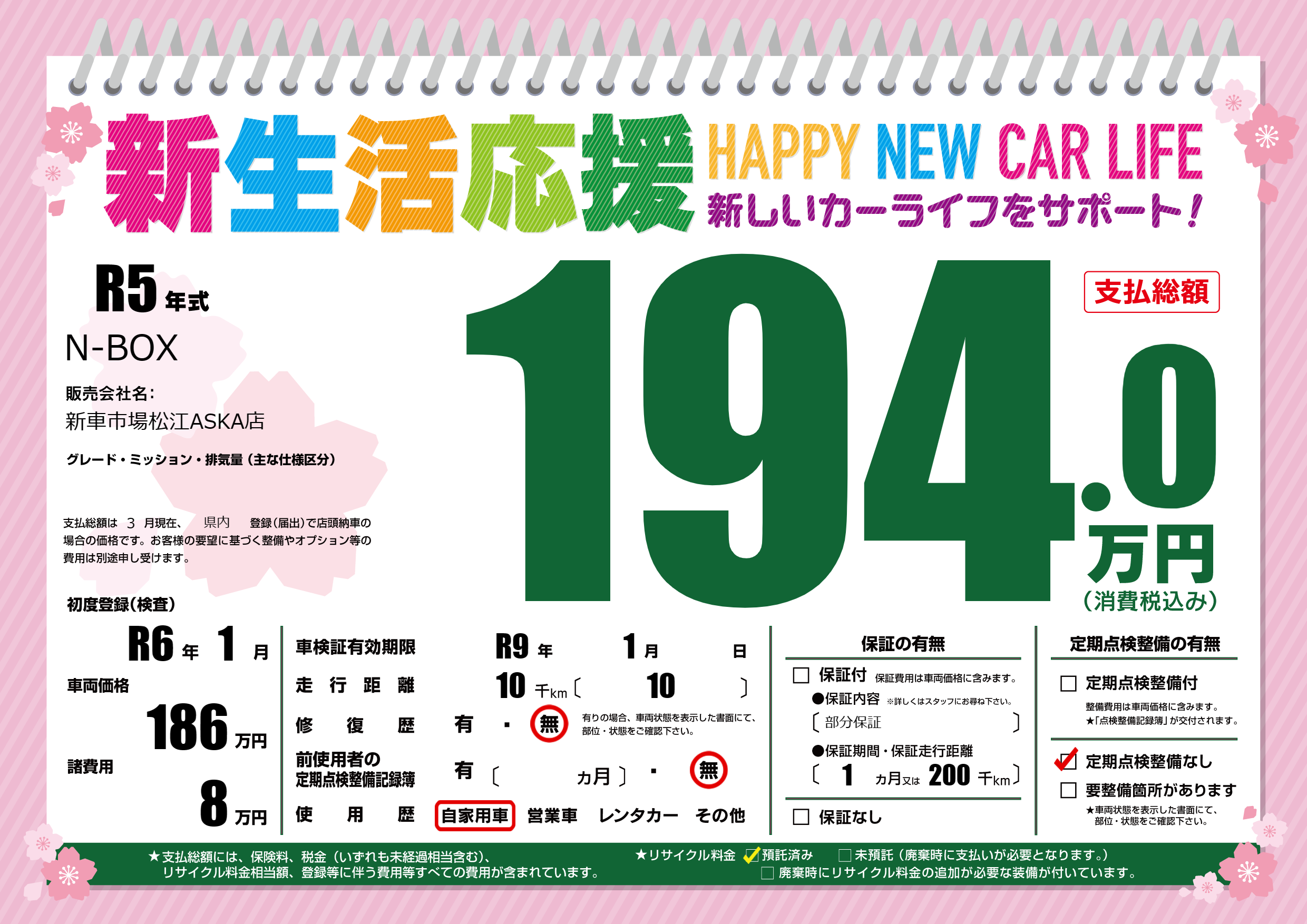 | 車名 | N-BOX | グレード ミッション 排気量 |