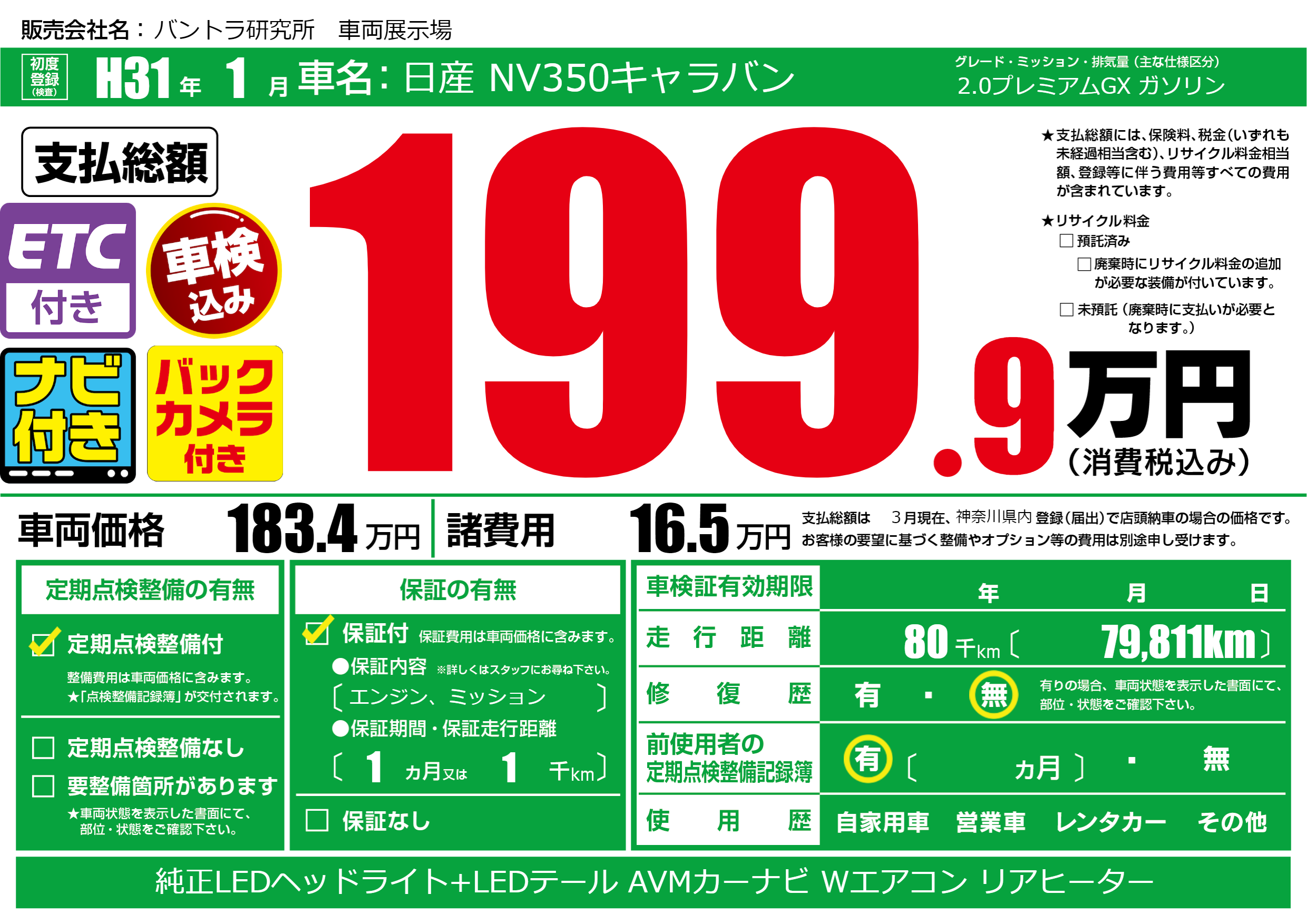 | 定期点検整備 | 定期点検整備あり | ||
