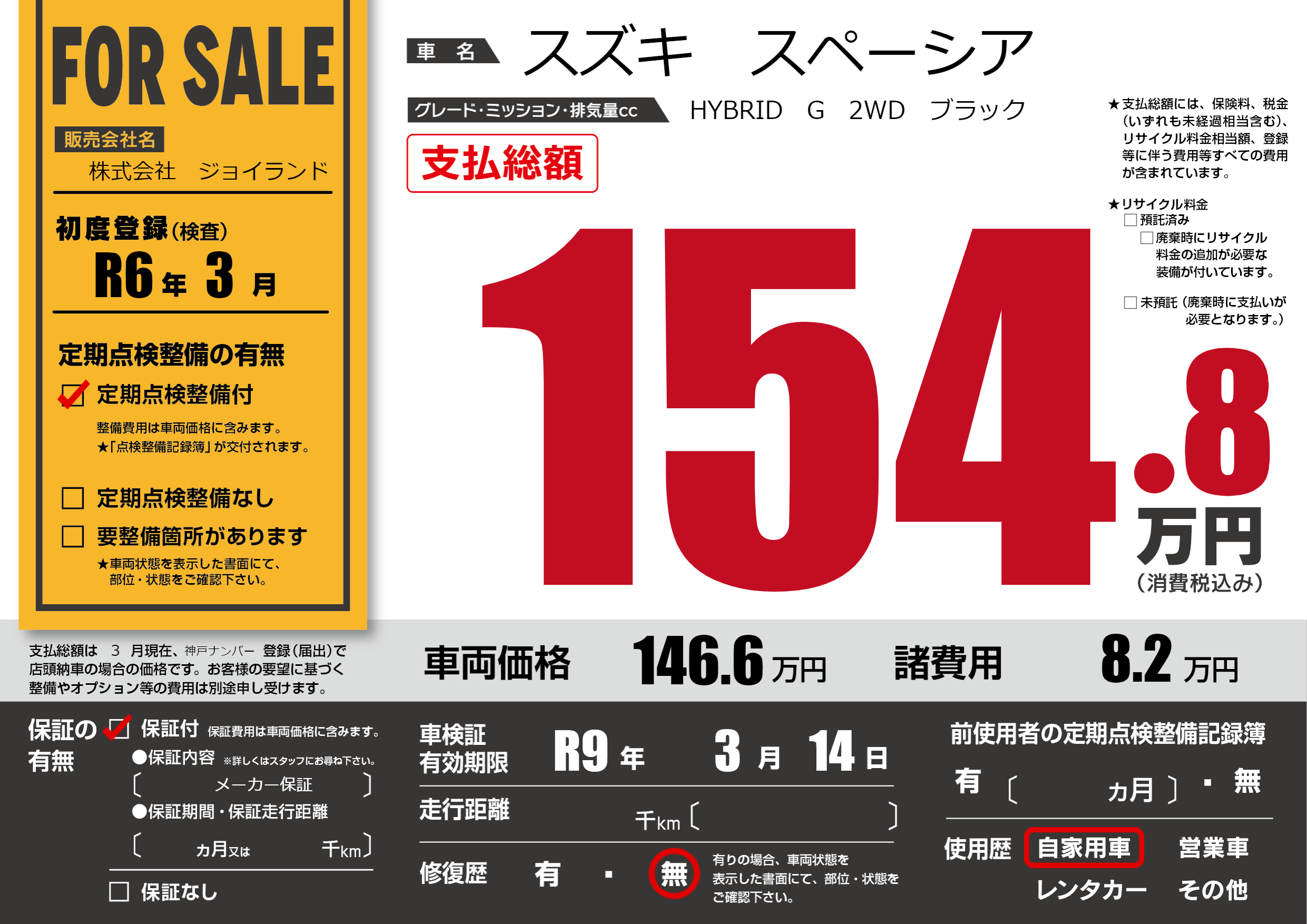 保証付き 保証内容( メーカー保証) ---ヶ月または()千kmまで |