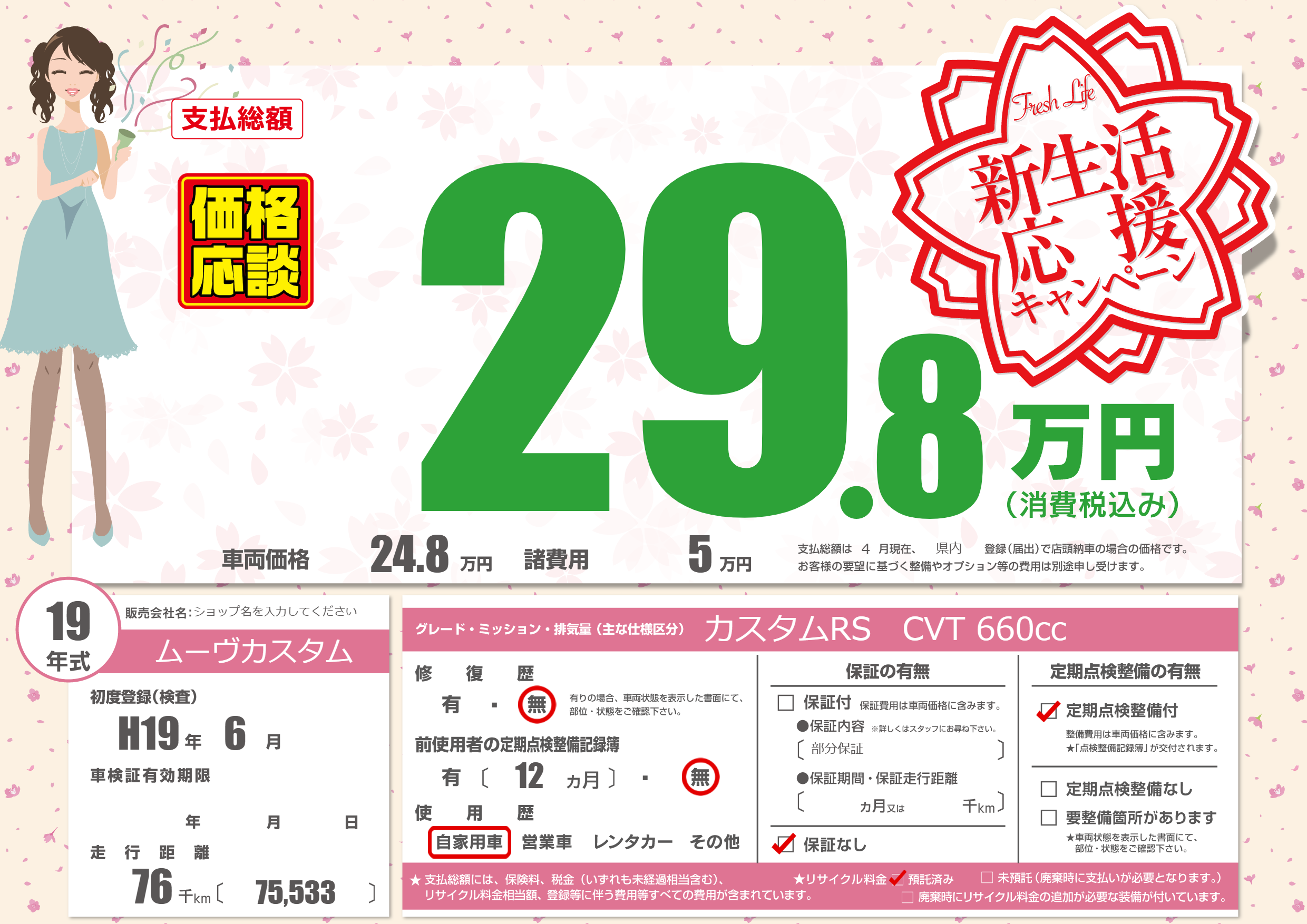 | 車名 | ムーヴカスタム | グレード ミッション 排気量 |