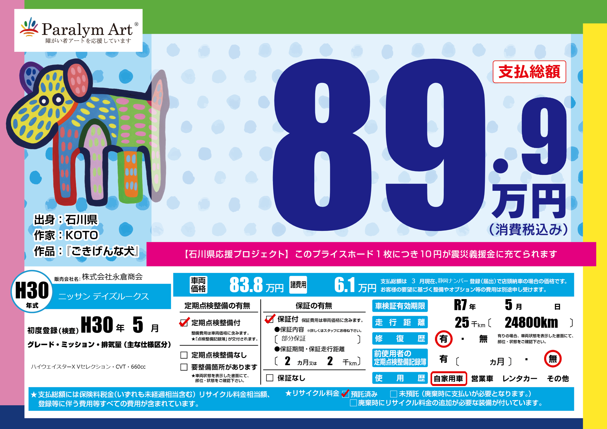 | 車名 | ニッサン デイズルークス | グレード ミッション 排気量 |