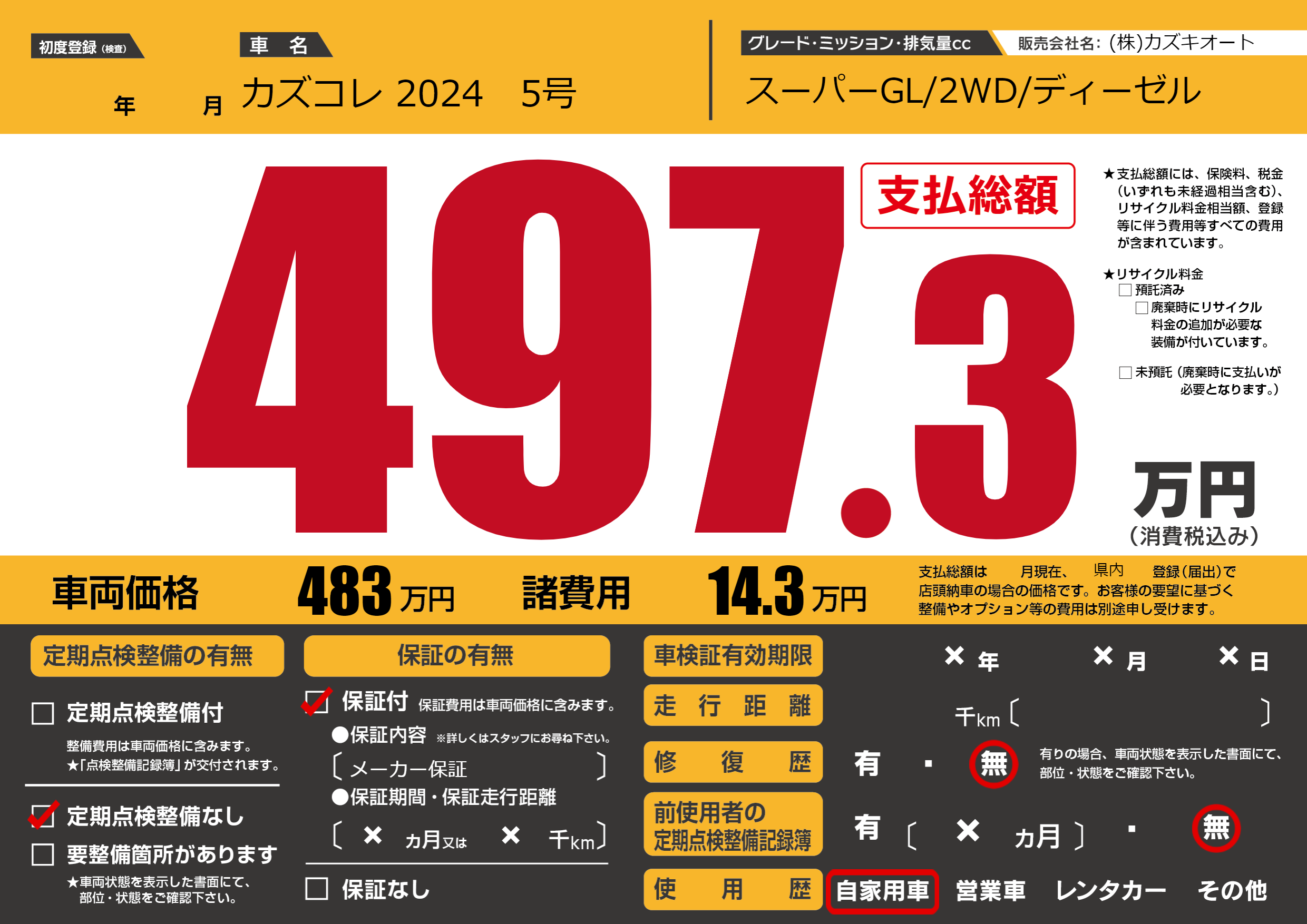 | 車名 | カズコレ 2024 5号 | グレード ミッション 排気量 |