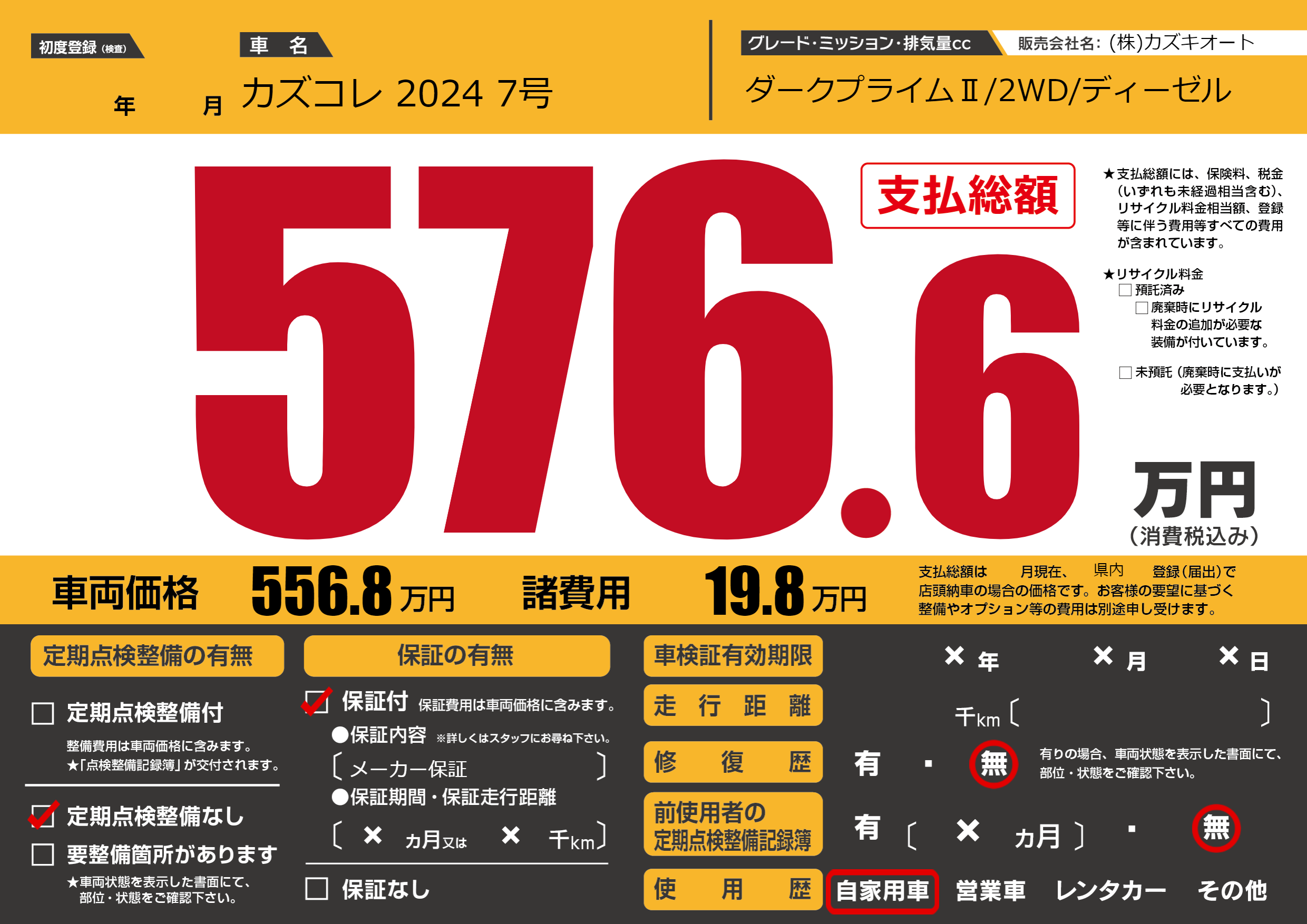 | 車名 | カズコレ 2024 7号 | グレード ミッション 排気量 |