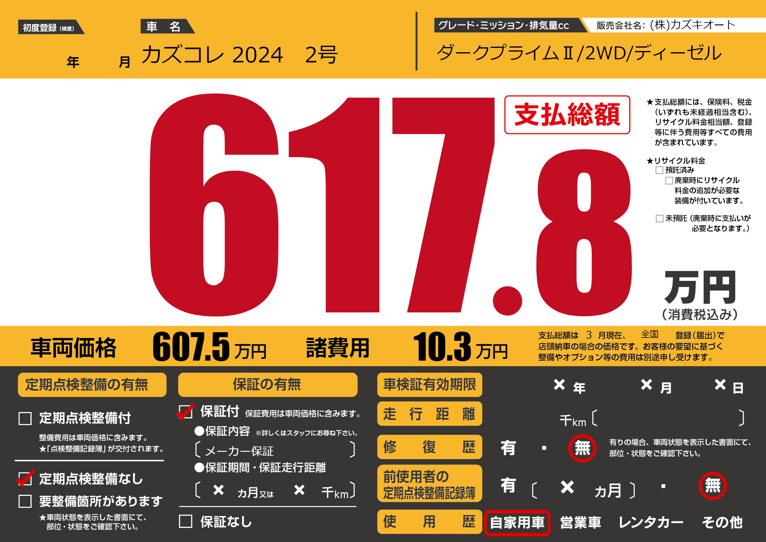 | 車名 | カズコレ 2024 2号 | グレード ミッション 排気量 |