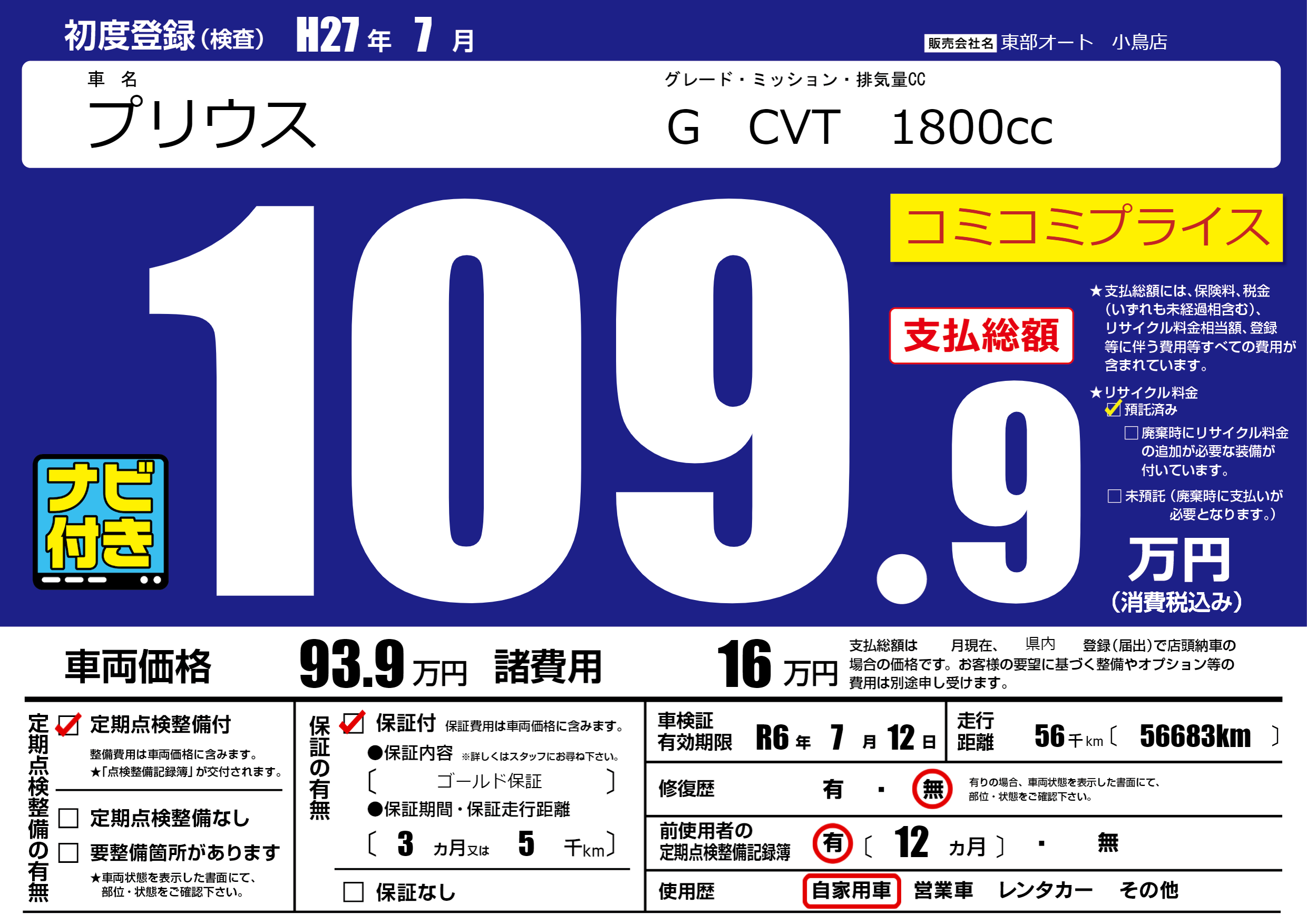 なし | 車検制限 | R6年7月12月 |