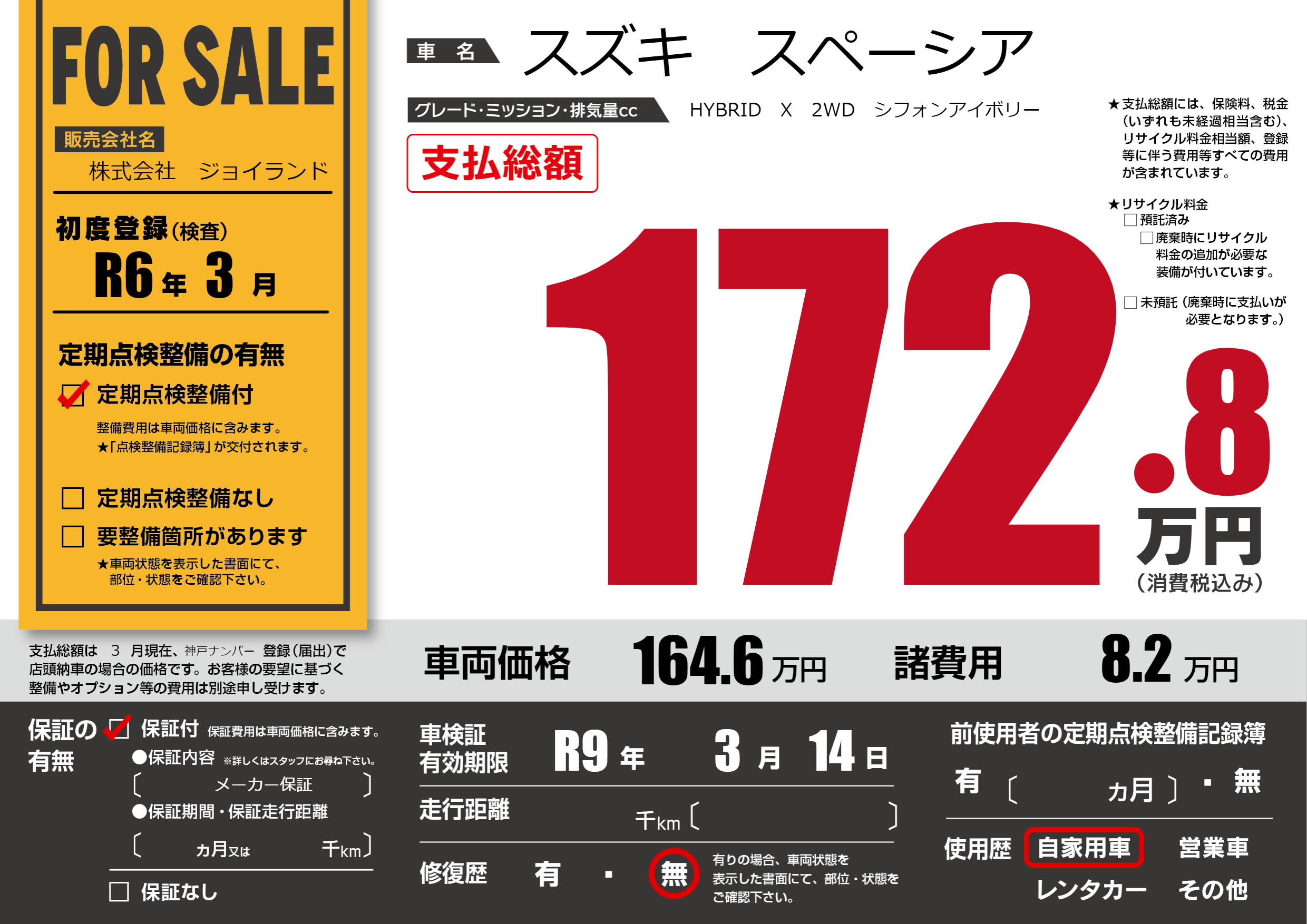 なし | 車検制限 | R9年3月14月 |