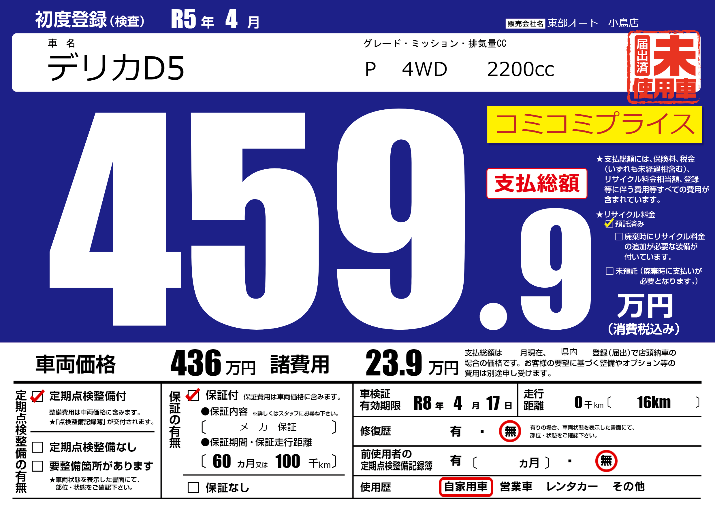 | 車名 | デリカD5 | グレード ミッション 排気量 |