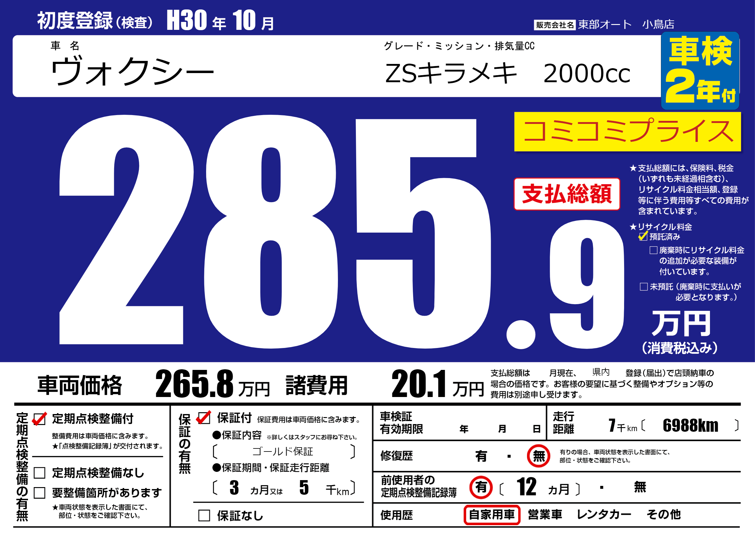 | 車名 | ヴォクシー | グレード ミッション 排気量 |