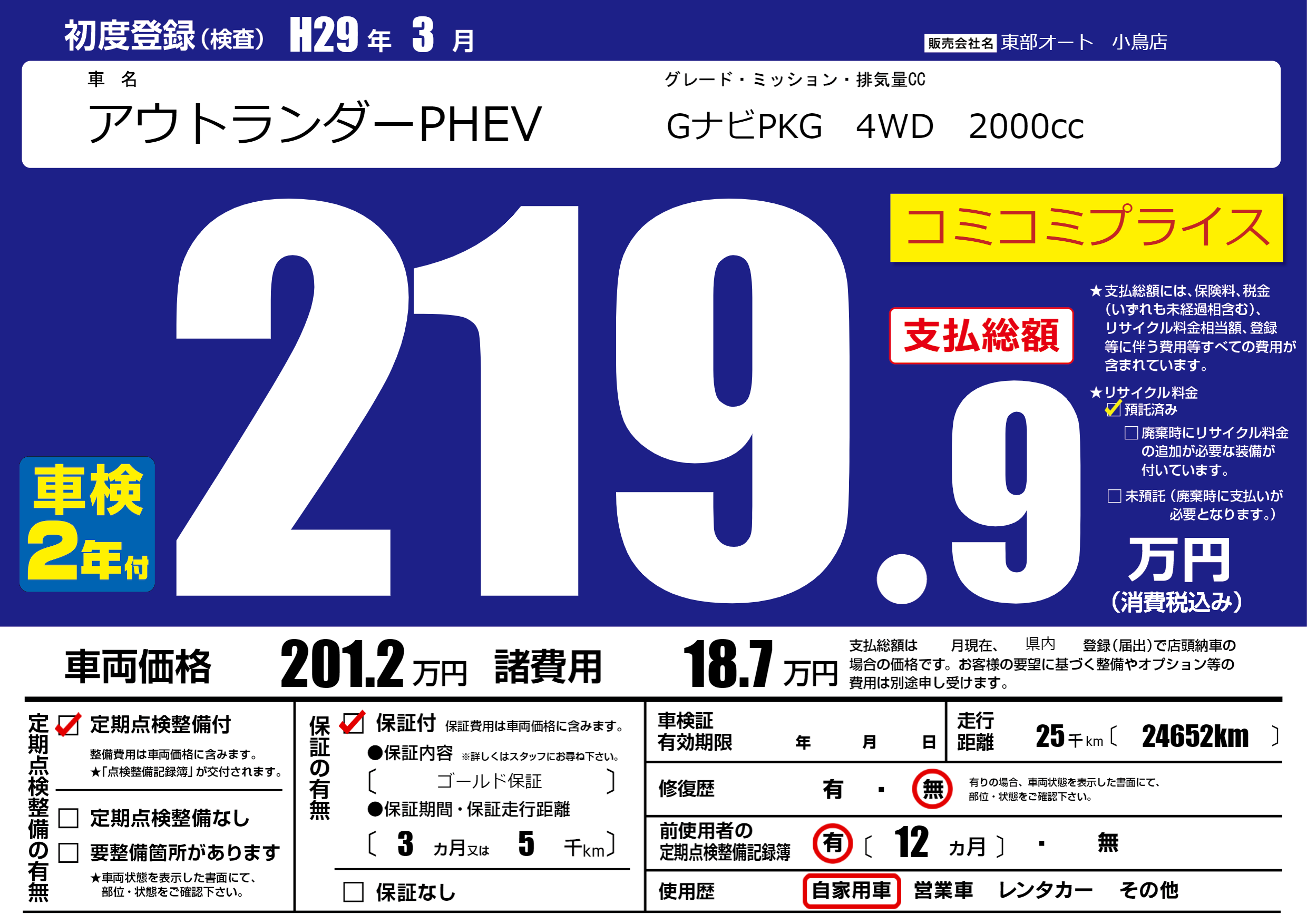 | 定期点検整備 | 定期点検整備あり | ||