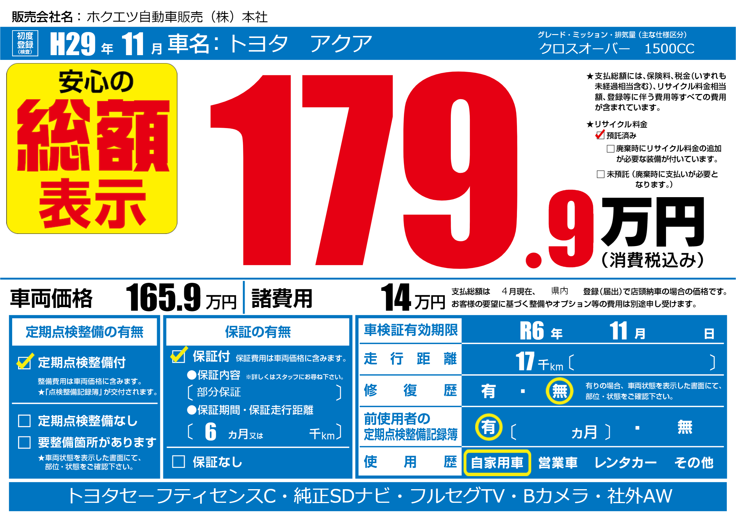 | 車検制限 | R6年 11月 - 日 | ||